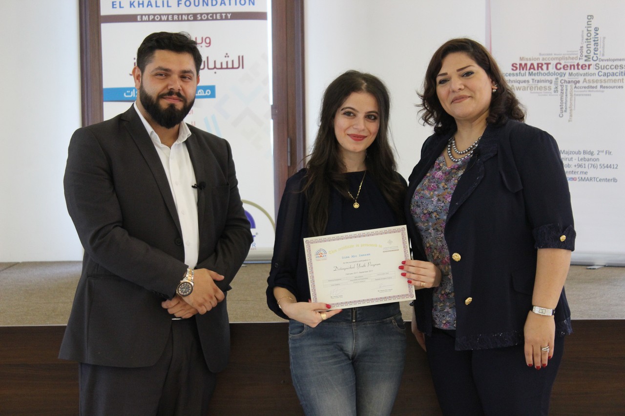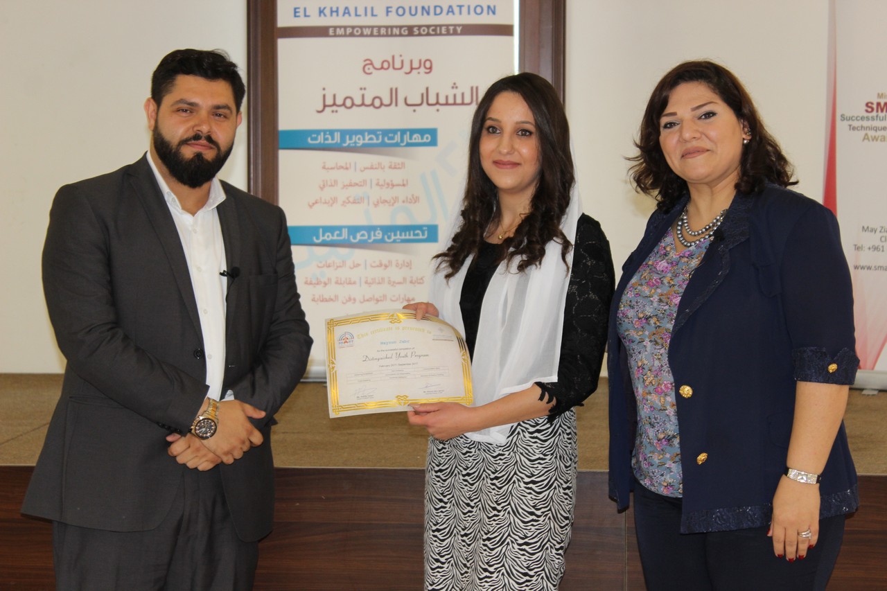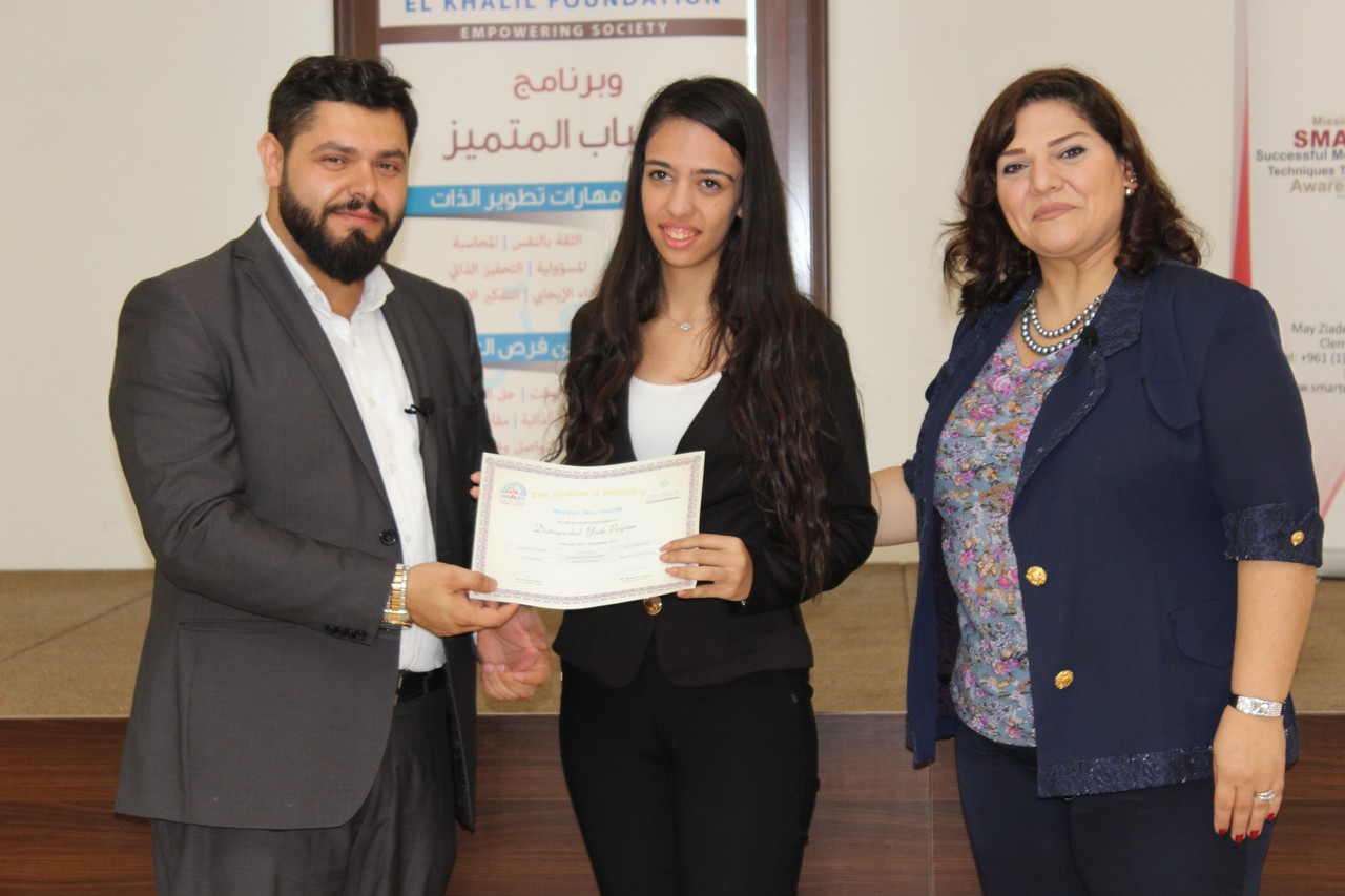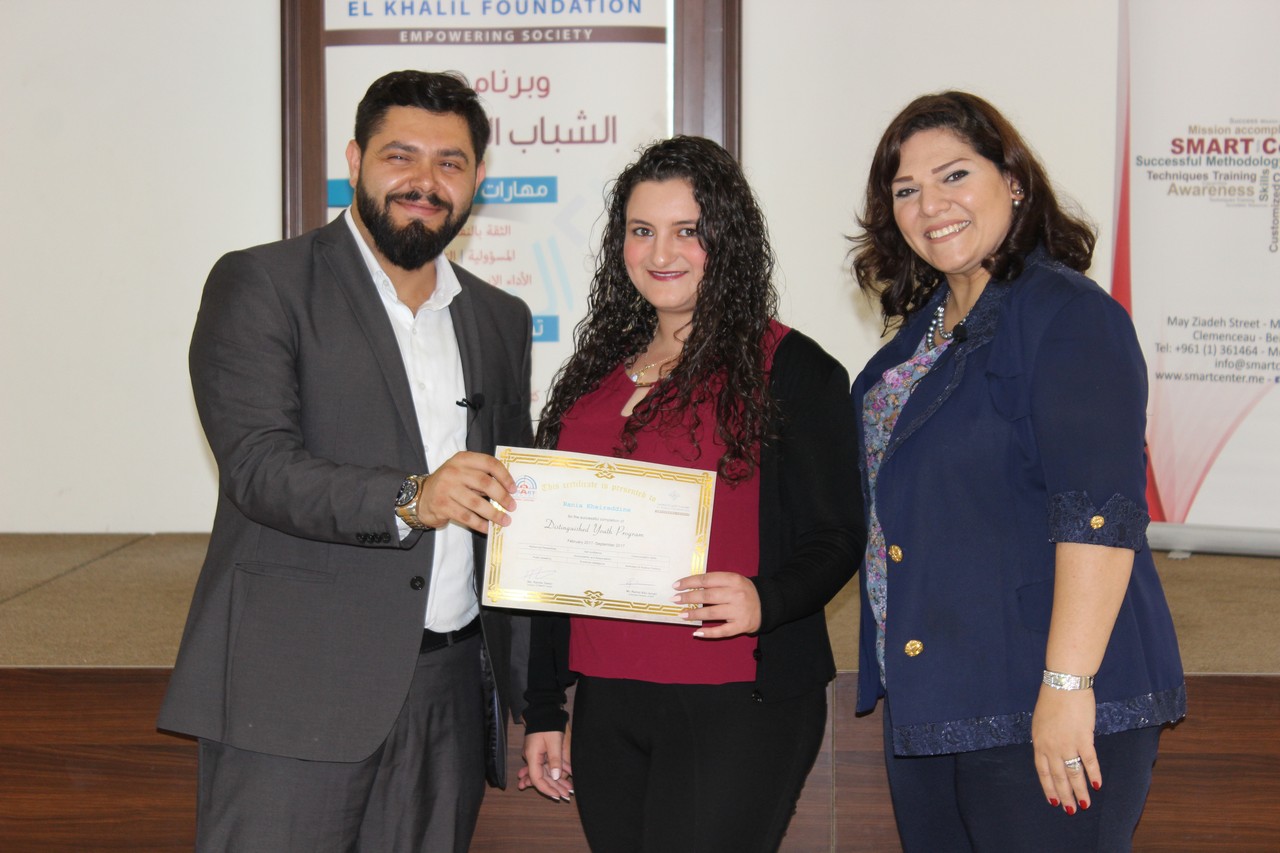 أختتمت مؤسسة الخليل الاجتماعية بالتعاون مع سمارت سنتر المرحلة الاولى من برنامج الشباب المتميز وأطلاق المرحلة الثانية من البرنامج في حفل اقيم في دار حاصبيا ، تحدثت فيه رندى يسير مديرة مركز سمارت سنتر في لبنان حيث شرحت فائدة البرنامج الذي استمر لمدة سبعة اشهر وتناول مواضيع عدة اهمها تنمية الذات والقدرات وتعزيز المهارات في عدة مجالات منها فن الخطابة والتركيز الايحائي والذكاء العاطفي والثقة بالنفس والتواصل الفعال .وشملت الدورة نشاطات تطبيقية وأنشطة تفاعلية رافقتها جلسات تثقيفية مرتبطة بالمواضيع اليومية للمواطن اللبناني كما أكدت على أصرار الجميع على متابعة الدورات لفوائدها الجمة في الحياة اليومية