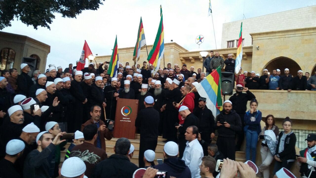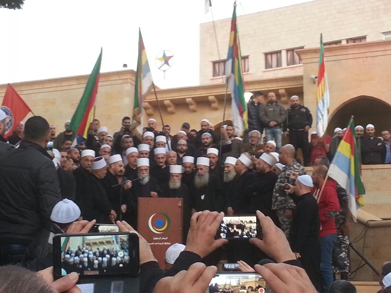 تعقيباً على الهجوم البربري للجماعات المسلحة على قرية حضر ومحيطها فجر اليوم أقيم في مقام السيد الامير التنوخي في عبيه لقاء لمشايخ الطائفة الدرزية ، تلى في نهايته سماحة شيخ العقل الشيخ نعيم حسن بيان دعم واستنكار لمن يحدث في المقلب الاخر لجبل الشيخ وهذا نصه: