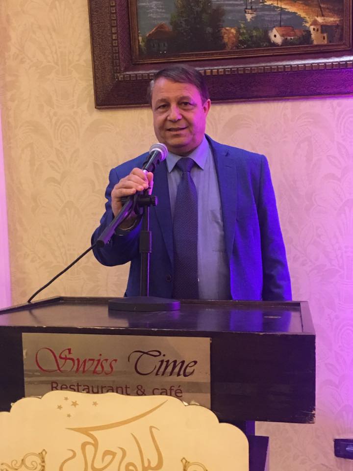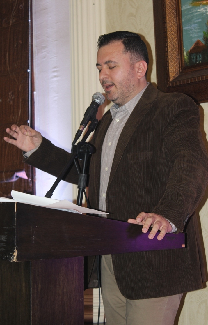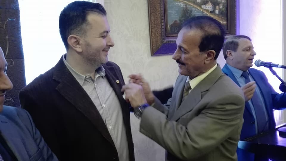 الضيفان العراقيان الأستاذان الجامعيان د. خالد سهر ود. سمير الخليل عضوا وفد منتدى النقاد الأكاديميين الذي يزور منتدى ليل وحكي قلّدا الشاعرين زرّ منتدى ليل وحكي وسط تصفيق الحاضرين .