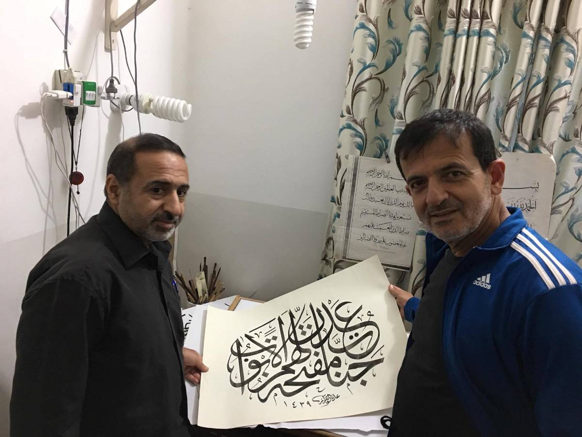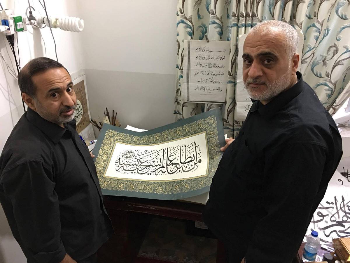 وانتقل الوفد الى مدينة النجف الأرشف والتقيا عباس وشحادي الخطاط عدنان القزاز واطلعا منه على اخر نشاطاته في الخط والزخرفة وكانت الأجواء اخوية ومميزة توجت بالاتفاق على التواصل من اجل اطلاق مشاريع مشتركة في الخط العربي .
