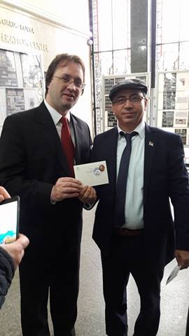 بعد ذلك قدم الخطاب هدايا تذكارية عبارة عن ألبوم طوابع فلسطينية للسفير الفلسطيني ولنائب وزير الخارجية و لرئيس اتحاد الهواة ومدير البريد المركزي البلغاري.