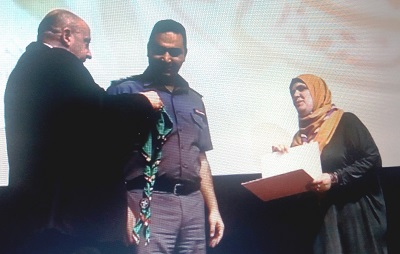 وفي الختام قام النقيب هاني القادري ممثل قائد منطقة الجنوب الإقليمية في قوى الأمن الداخلي العميد سمير الحاج شحادة بتقديم " وسام القائد المميز الذهبي" والمنديل الكشفي للقائدة ناهد الصباغ المصري.