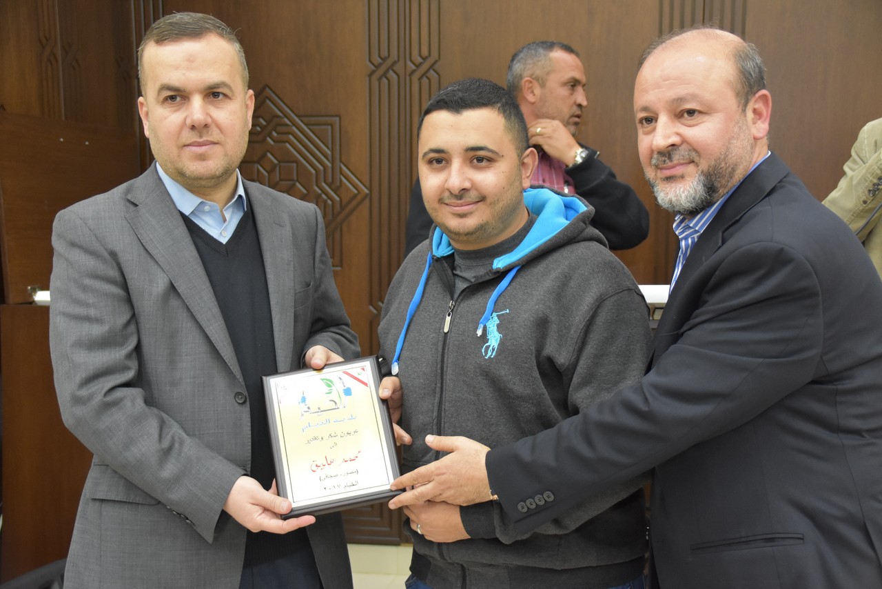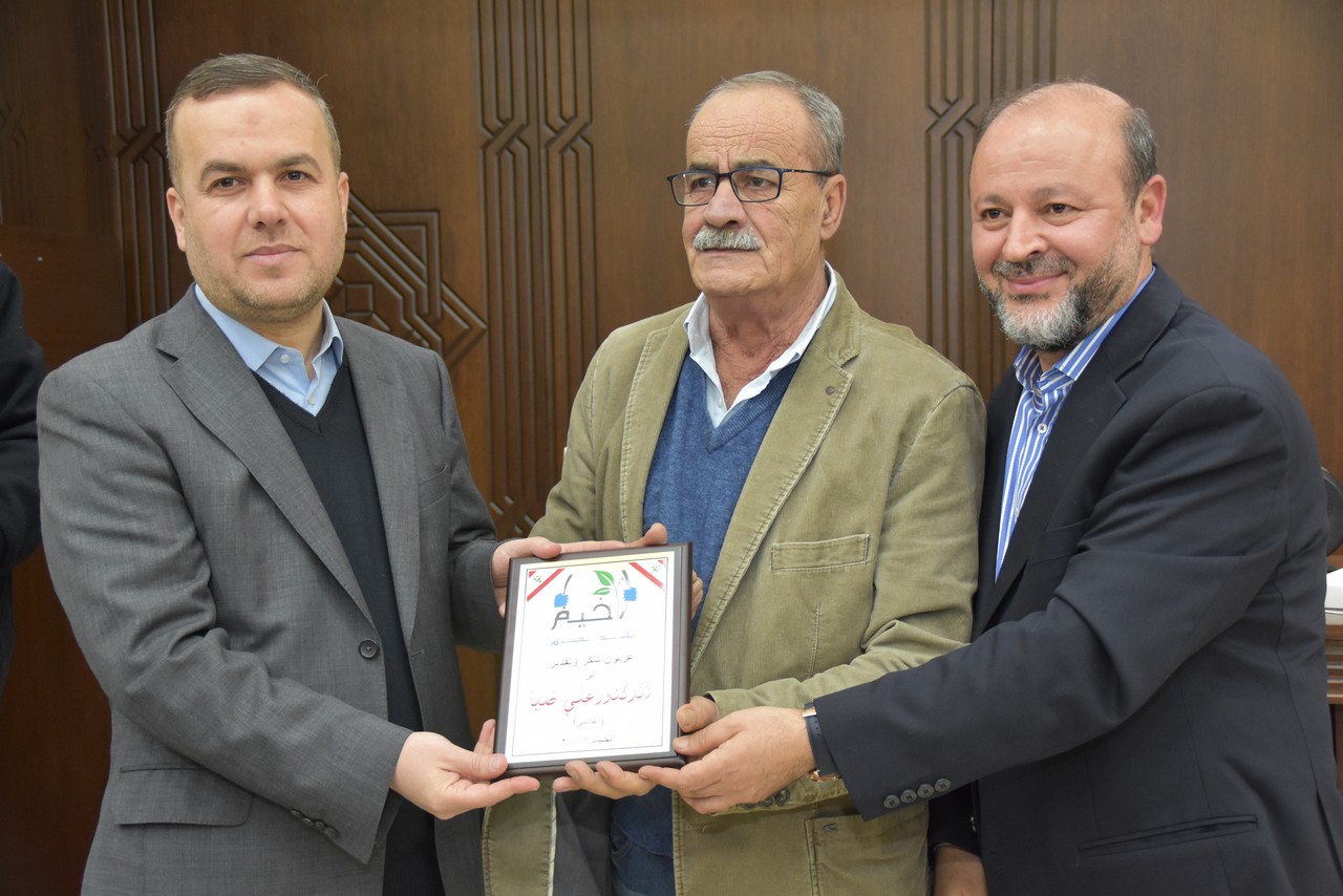 وختام الكلمات كانت للكاتب والمحلل السياسي يونس عودة الذي تحدث باسم الإعلاميين المكرمين قائلاً إن الإعلامي هو في الأصل كالجندي ليس طالب شهرة، وإن أتت فلا بأس بها، ولكنها لا يجب أن تكون غاية، لأن الشهرة كالطوق، فهو جندي في معركة مستمرة، وفي المحطات الوطنية يجب أن يكون أكثر انتماءً وصلابة، فلا تغريه المغريات، ولا وعود الساسة، ولا السقوط في حبائل الإغراء، بل يجب أن يكون وطنياً يقاوم كل المظالم.