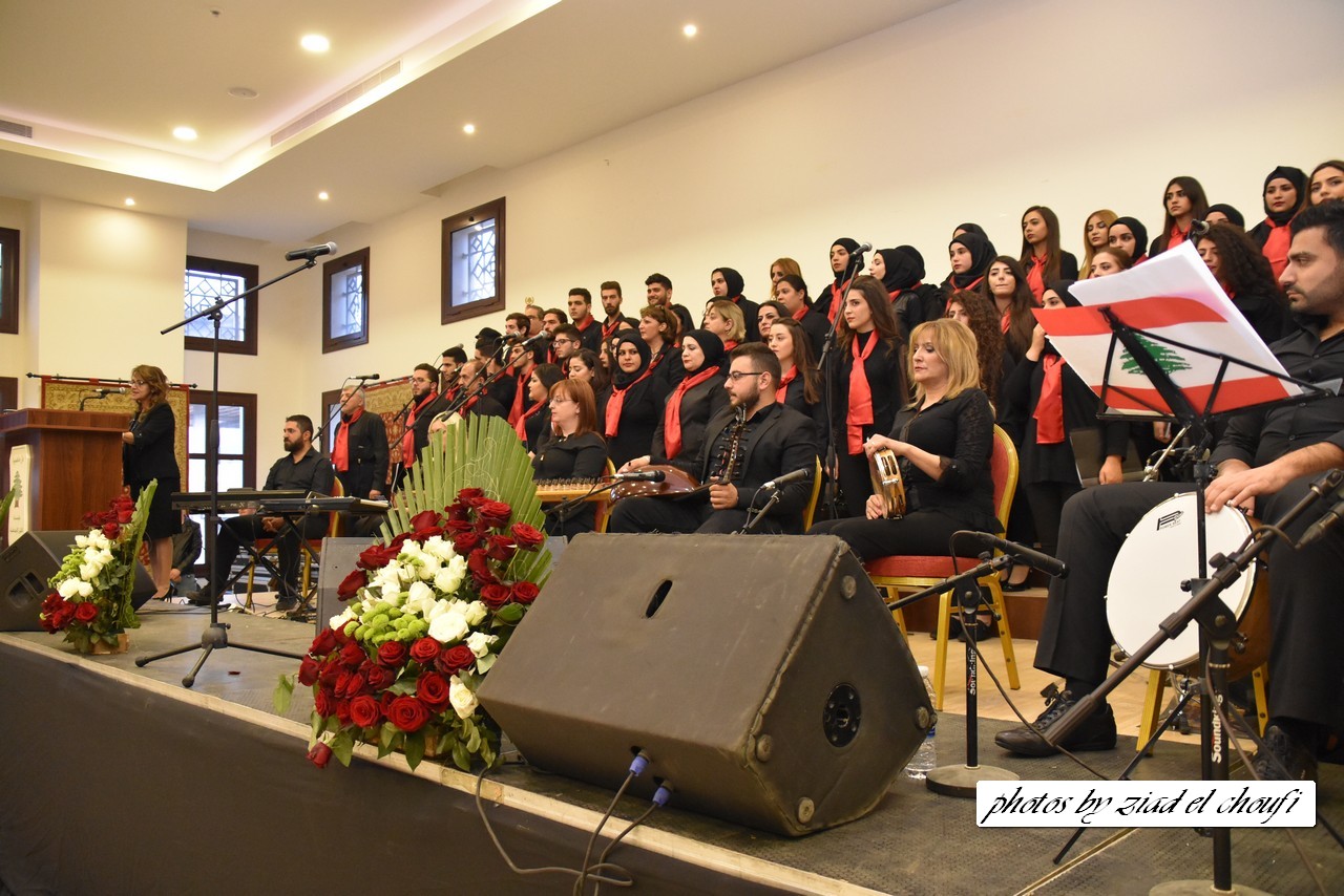 شعبٌ مقاوم وجيشٌ باسلٌ وطني، شكلا معاً إرادة واحدة، فقررا وواجها معا مجموعات إرهابية، حاولت تقويض أمننا وسيادتنا، ولامست بمشروعها السياسي حدّ تهديد الكيان، فكانت المواجهات التي حسمها جيشنا الوطني بعملية "فجر الجرود" في العام 2017، فحصّنا الوطن بسياج عالٍ من التضحيات والشهداء، فكل التحية لشهداء وجرحى الجيش وسائر المؤسسات الأمنية، ولهم منّا كل الوفاء.ما يزيد إحتفالنا هذا العام فرحا وفخرا، أننا نحييه مع فرقة كورال في جامعتنا الوطنية، الجامعة اللبنانية.والعلاقة بين الإستقلال والجامعة اللبنانية كإطار وطني جامع، يحتضن في كلياته شبابنا وشاباتنا، علاقة موضوعية.