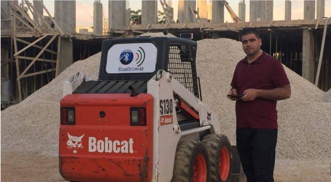 وكذلك زودت الجهاز بكاميرا مثبتة تبث صورة مباشرة عبر تقنية الـ (wifi) إلى شاشة الهاتف، وذلك بهدف إتاحة مجال رؤية بشكل واضح ومريح خلال العمل والتحكم من بعد، علماً بأن الجرافة التي أجريت عليها التجربة وزوّدتها بجهاز (BlueDrive 48) هي من نوع الـ s130 bobcat الأميركية، والمصنوعة عام 2009، وهي لم تهيأ بأي تجهيزات للقيادة الآلية بتاتاً.