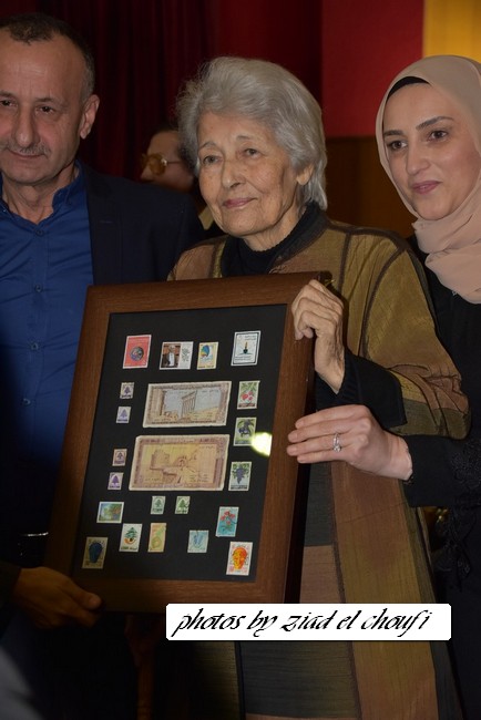 وبعد توزيع ثلاث بطاقات بريدية تحمل إحداها صورة الكاتبة بالأبيض والأسود في مرحلة السبعينيات وأخرى لغلاف كتاب طيور أيلول، أما الثالثة فللوحة من رسم الفنانة خولة الطفيلي، التي قامت بدورها بتقديم اللوحة الأساس إلى الأديبة نصرالله. وحملت البطاقات التي أصدرها “المجلس الثقافي للبنان الجنوبي” و”جمعية بيت المصور في لبنان” و”معرض خليل برجاوي لطوابع البريد” خصيصاً لمناسبة التكريم نبذة عن نصرالله باللغتين العربية والإنكليزية وتوقيع اسمها بخط يدها وعبارة “مع محبتي… املي نصرالله 30/11/2017”.