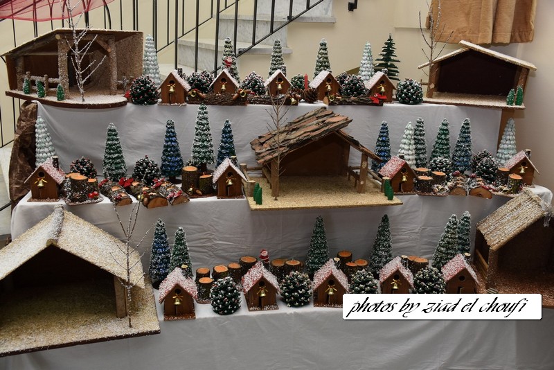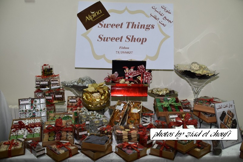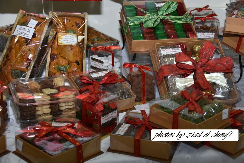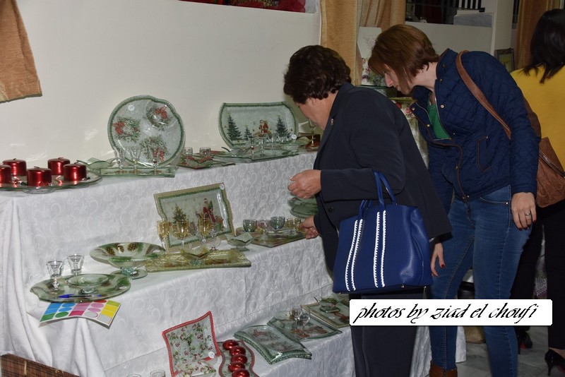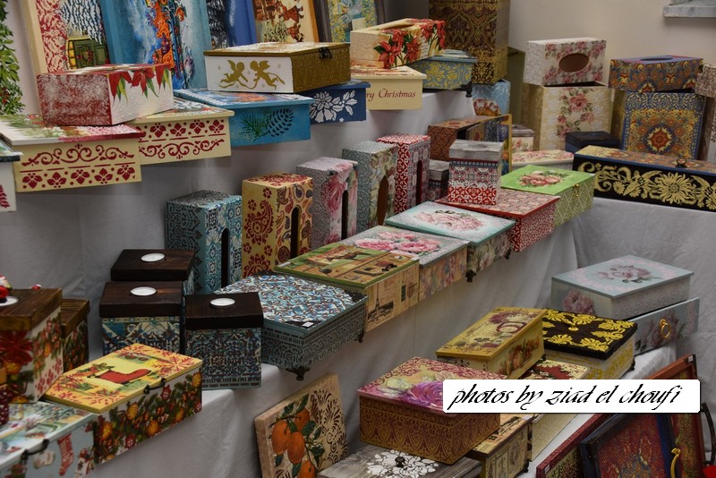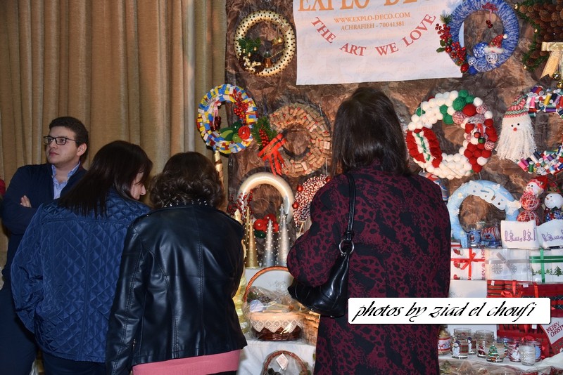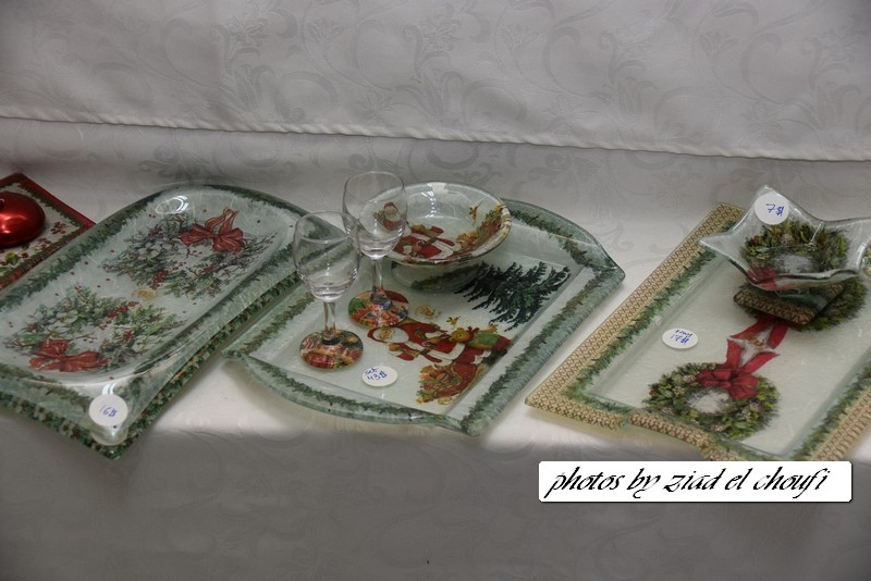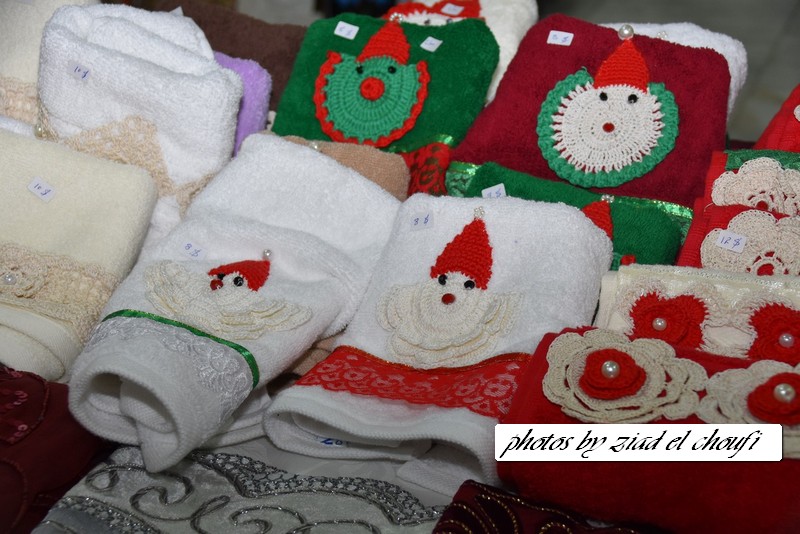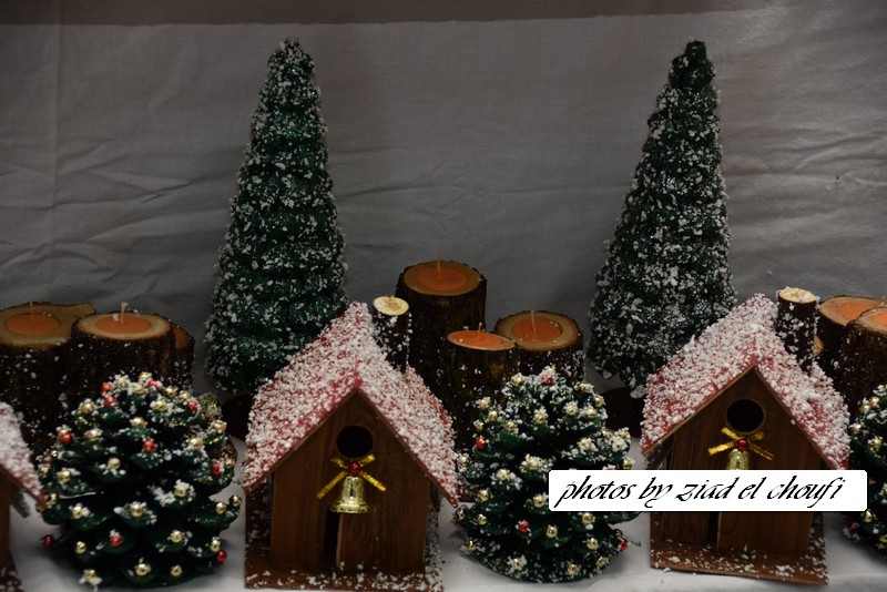 ويحوي المعرض منتجات منزلية واشغال يدوية من الكروشية والشموع ومستلزمات الميلاد والرسم على الزجاج بالاضافة الى كعكة العيد والشوكولا .