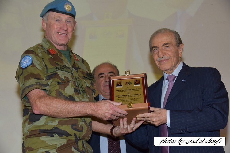 اضاف: " نستضيف اليوم، قائد قوات اليونيفيل العاملة في جنوب لبنان اللواء مايكل بيري، في مبادرة منه تهدف إلى تعزيز علاقات التعاون بين قوات اليونيفيل وبين المجتمع الحاضن لها.لقد مضى على وجود قوات الطوارىء الدولية في لبنان نحو 39 عاما، منذ العام 1978، إنفاذا للقرارين الدوليين 425 و 426. والقرار اللاحق رقم 1701 الذي صدر عن مجلس الأمن على أثر العدوان الإسرائيلي في العام 2006. ومنذ ذلك التاريخ، تقوم القوات الدولية بواجباتها وفقا لما هو منصوص في القرارت ذات الصلة، وقد كانت هذه القوات شاهدا على شريط طويل من الإعتداءات والأعمال العدوانية التي يقوم بها العدو الإسرائيلي والمجازر التي إرتكبها في إطار عمليات عسكرية واسعة شنتها إسرائيل ومنها عملية الليطاني 1978، وعدوان تموز 1981 والإجتياح الإسرائيلي للبنان في العام 1982 وحرب الأيام السبعة في العام 1993 وعملية عناقيد الغضب 1996، وعدوان العام 2006، فضلا عن الإعتداءات والإنتهاكات اليومية لسيادة لبنان، جوا وبرا وبحرا.إنني إذ أنوه بدور القوات الدولية، أدعوها لتنفيذ ولايتها كاملة وعدم الوقوف على الحياد بين معتد ومعتدى عليه، والإكتفاء بتسجيل الخروقات اليومية، إذ أن وجودها كان مرتبطا ليس فقط بعمل المراقبة ولكن أساسا لتنفيذ كامل القرارات التي نصت على مساعدة لبنان في إستعادة أرضه المحتلة".