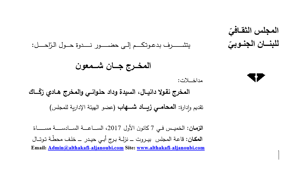 المخـــرج جــــان شــــمعون مداخـــــــلات: