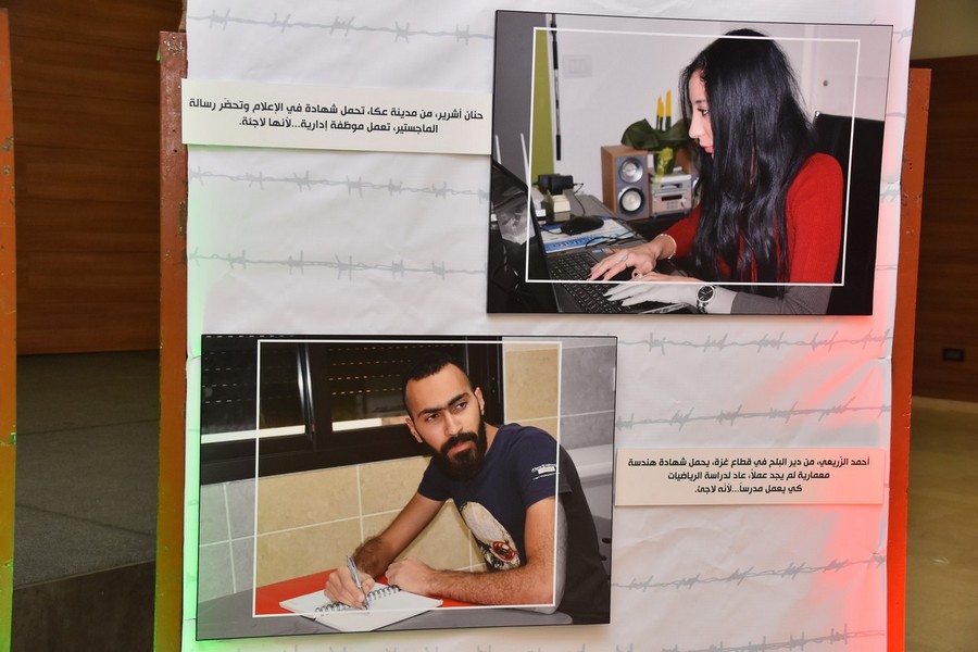 أن الشعب الفلسطيني في لجوئه يتسلح بالعلم ويحصد ألنجاحات ولديه ألكفاءات وألمهارات ، لكن للأسف لا يستطيع أن يمارسها في مجالاتها نتيجة منعه من ممارسة ألمهنة وحق العمل .