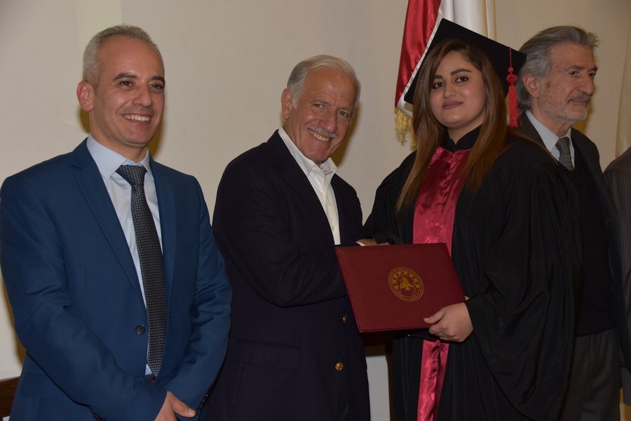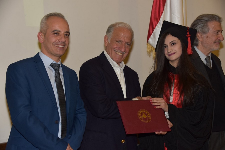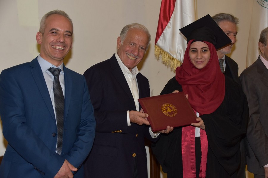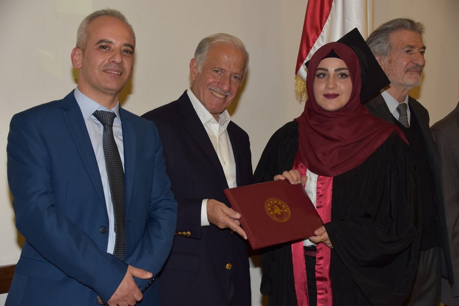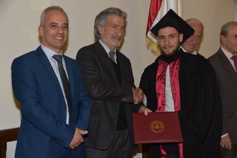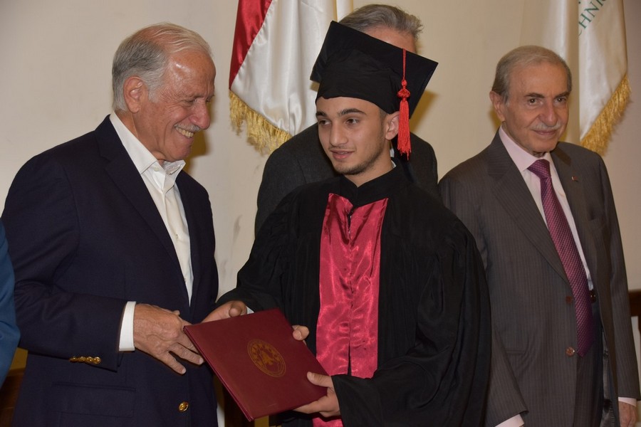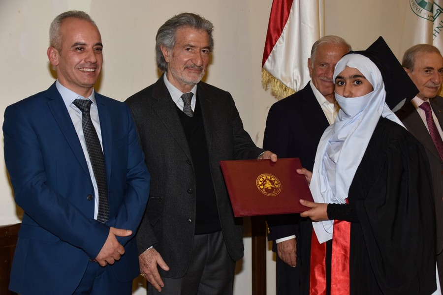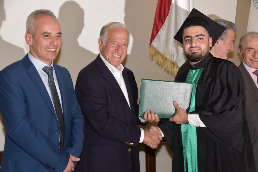 واختتم الحفل بتسليم دروع تكريمية للمساهمين في مساعدات للمعهد وتلاها توزيع الشهادات على الطلاب المتفوقين والناجحين .