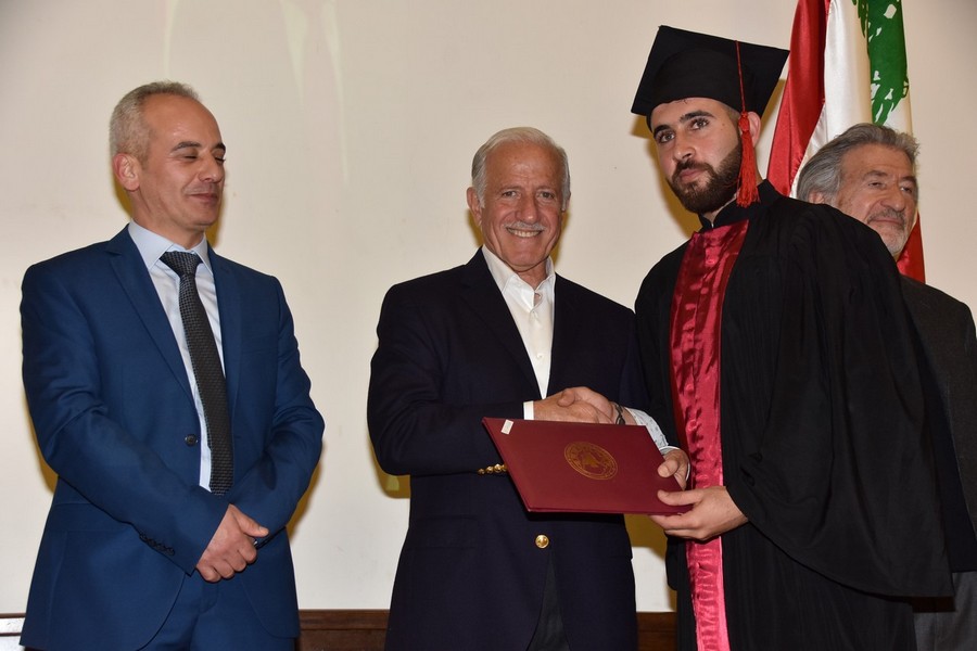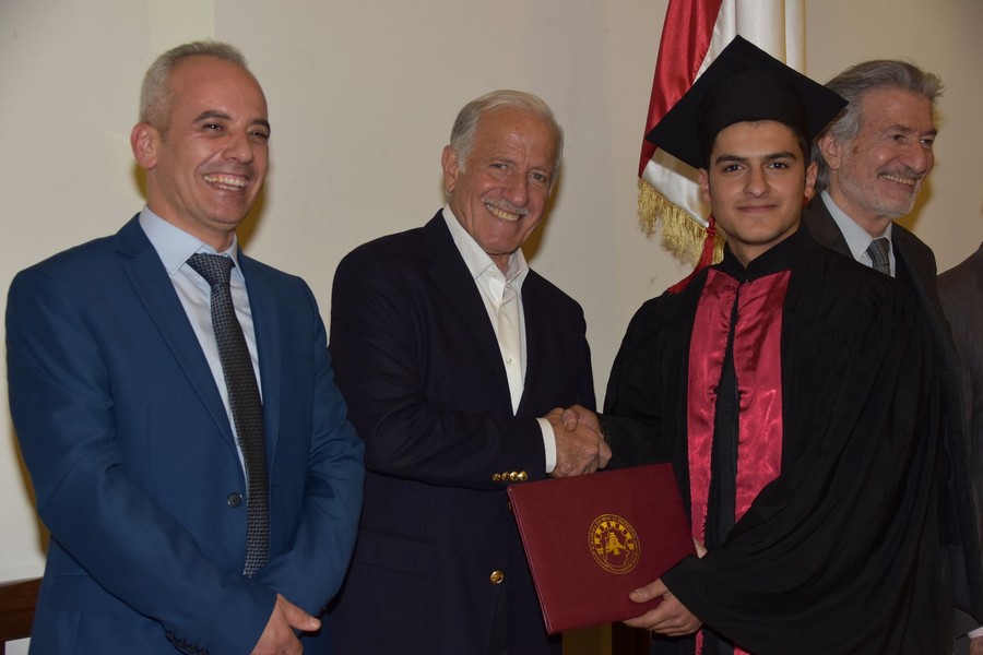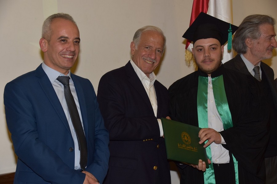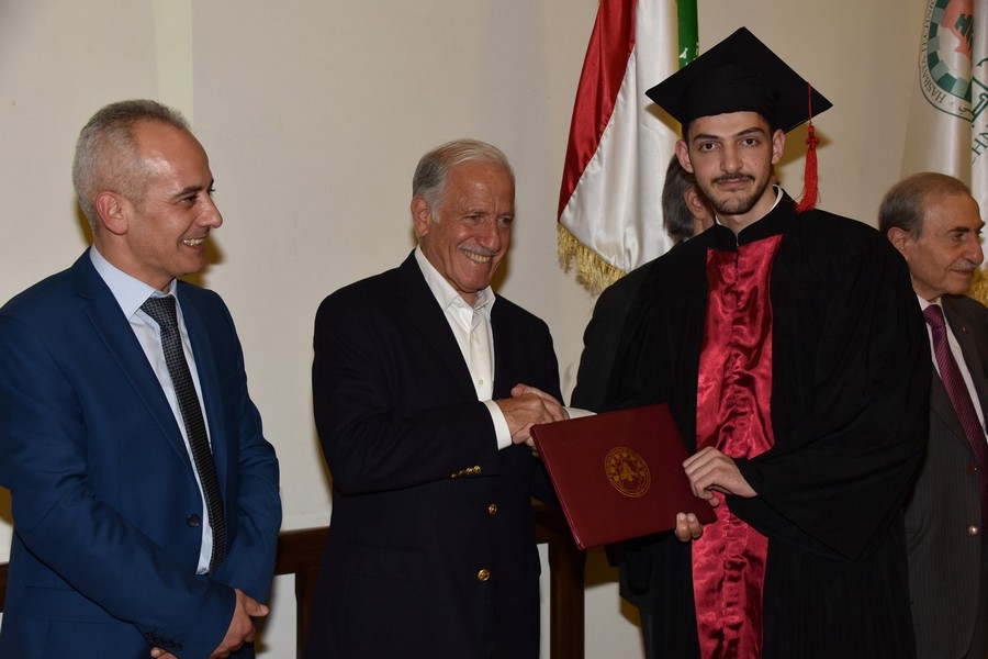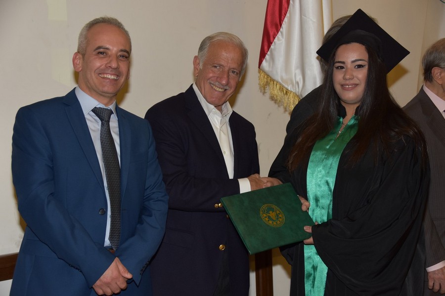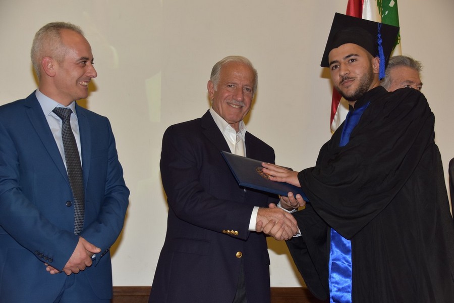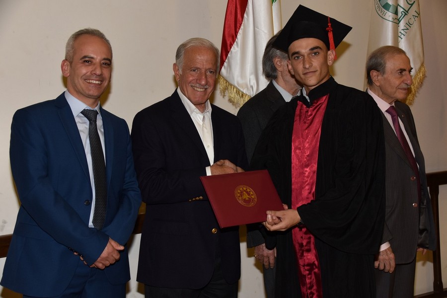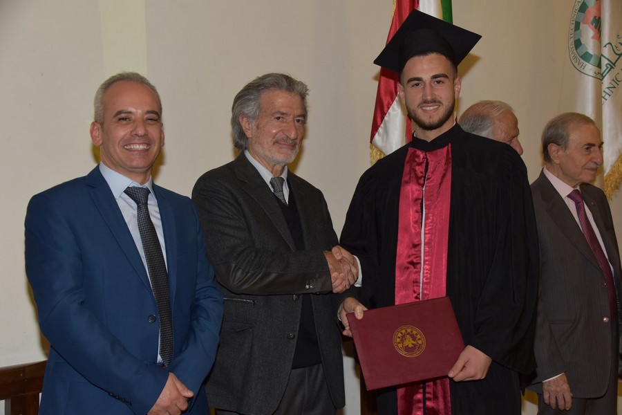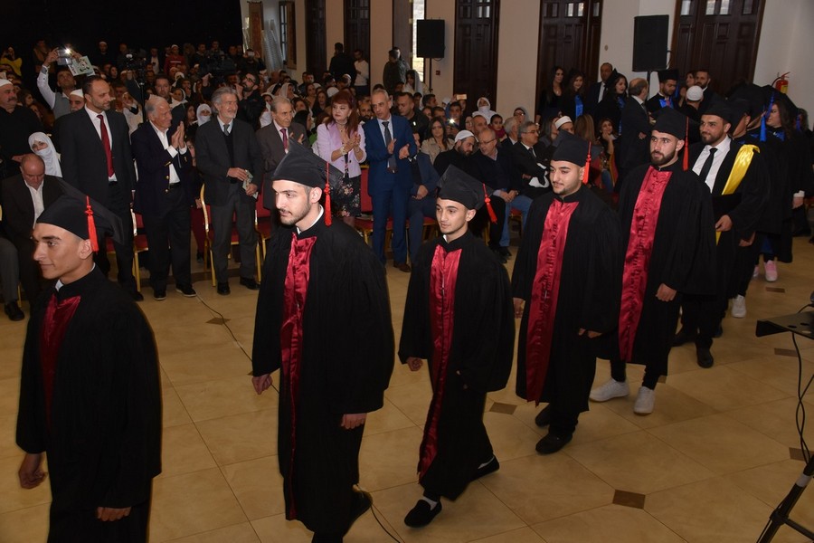 تلاها كلمة مدير المعهد الاستاذ رفيق نجاد أبرز ما جاء فيها : ان اجمل الايام في معهدنا هو يوم التخرج ويوم تكريم من يستحقون من طلاب جهدوا واجتهدوا ليقطفوا ثمار جهدهم نجاحاً ، وعندما يتعلق الامر بالتعليم المهني والتقني يعني الامر كمّ كبير من التدريب ومن تأمين المختبرات والتجهيزات المواكبة للتطور واصعب ما يعاني منه التعليم المهني في لبنان هو الشح في المعدات والتجهيزات ، فكانت المكرّمة المقدمة من الاستاذ زياد الخليل لمختبر الفندقية ومن معالي النائب انور الخليل للمختبر الفني ولمختبر العناية التمريضية الدور الاهم في استحداث فروع جديدة وتأمين تدريب كاف لطلابنا ، واليوم يتكرم علينا الشيخ فيصل الخليل ليزيد قدرتنا على السير قدماً وتحقيق التميز وفتح الفرص أمام طلابنا ، فقد زادت القدرة الاستيعابية لاختصاص الفندقية ومكنتنا من استحداث اختصاص الكهرباء لمستوى الامتياز الفني ( الجامعي ) وسوف تغطي المكرمة قسم ميكانيك السيارات .كما يتم العمل مع مؤسسة الخليل الاجتماعية لاطلاق مشروع دورات تقوية في اللغة الانكليزية لكل طلاب السنوات الاولى في المعهد .وختاماً أود ان ابشركم بأننا حصدنا هذا العام نتائج مبهرة في جميع الاختصاصات على صعيد المحافظة والوطن .