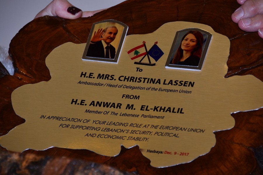 كرّم النائب انور الخليل رئيسة بعثة الاتحاد الأوروبي السفيرة كريستينا لاسن في احتفال حاشد اقيم في دار حاصبيا .