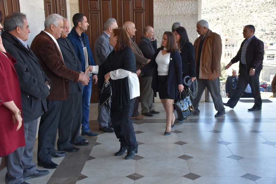 و ختاماً قدم النائب الخليل للسفيرة لاسن درعاً تذكارياً مصنوعاً من جذع شجرة الزيتون المعمرة .كما و قدمت سيدات المحبة لدى مكتب النائب الخليل سلة من المونة البلدية.