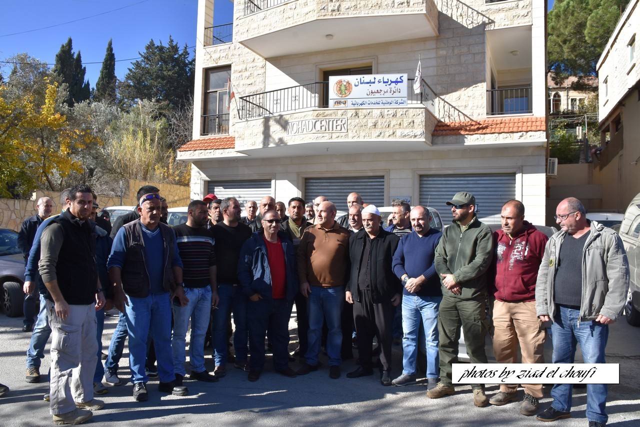 نفذ عمال ومياومو الكهرباء اعتصاما امام مبنى مؤسسة كهرباء لبنان في مرجعيون احتجاجا على عدم قبض رواتبهم الشهرية المتأخرة منذ ثلاثة اشهر، من مؤسسة دباس التابعة لمؤسسة كهرباء لبنان والتي تتولى عملية الجباية واصلاح الاعطال الكهربائية،