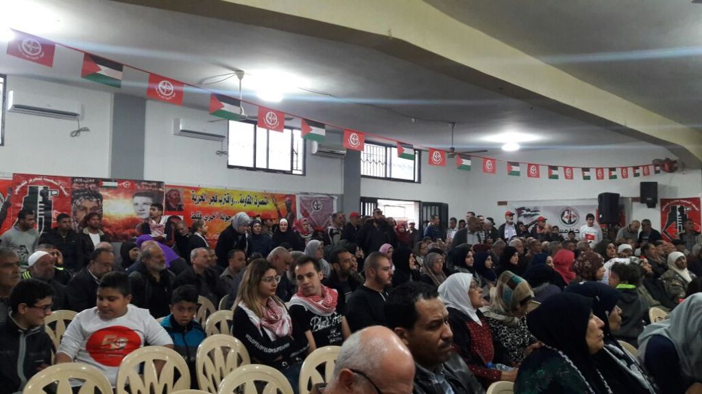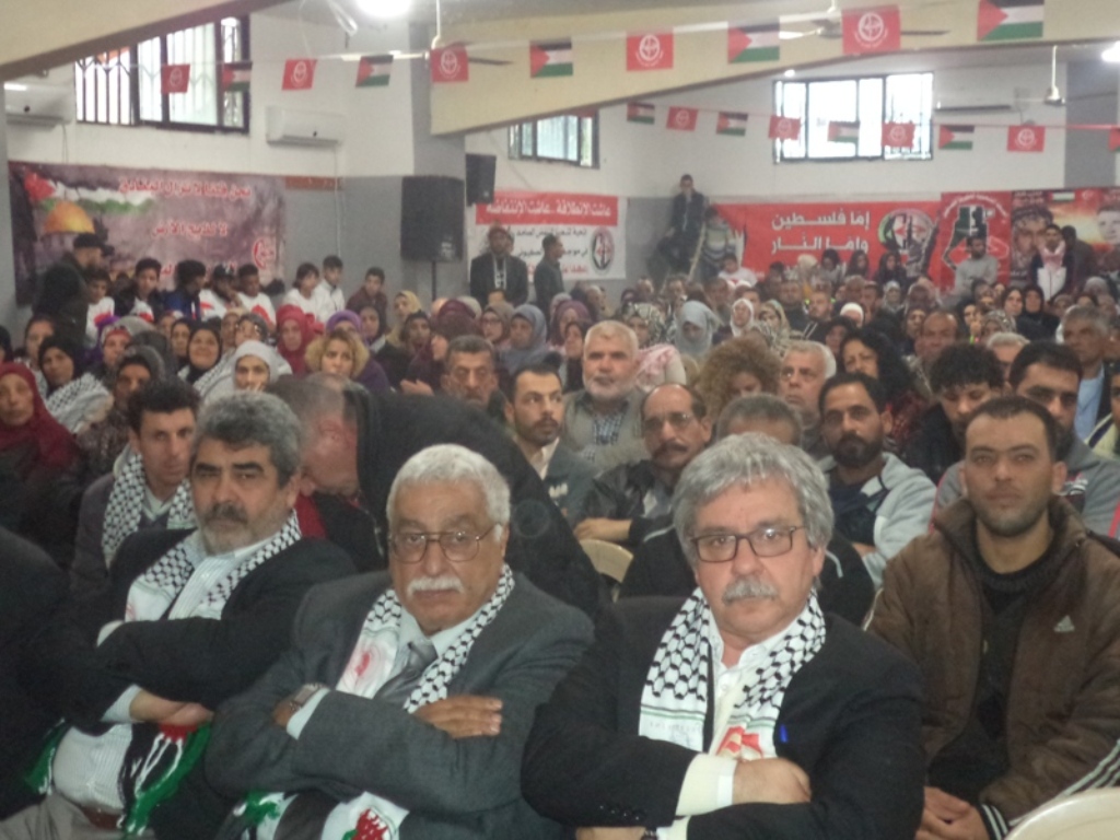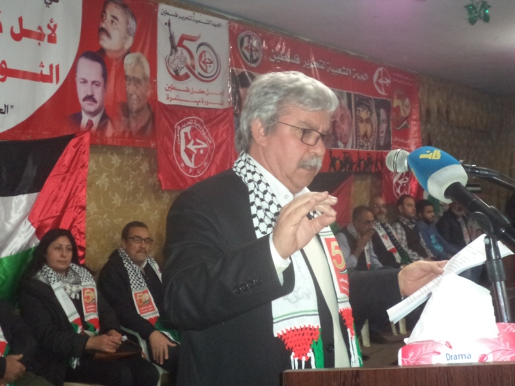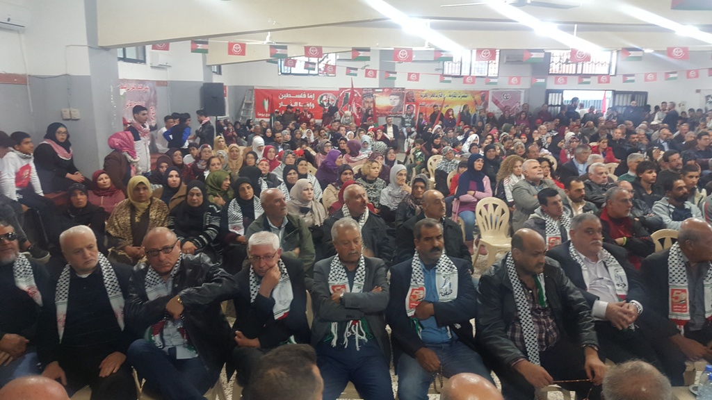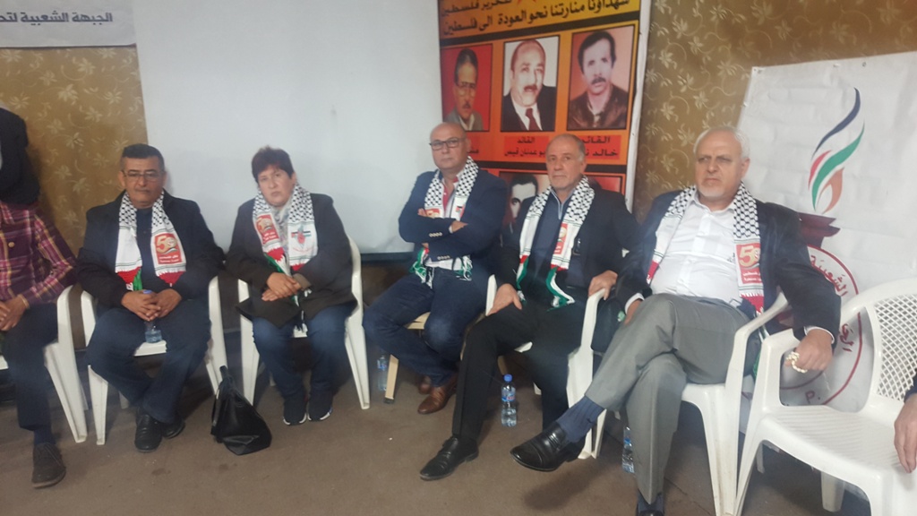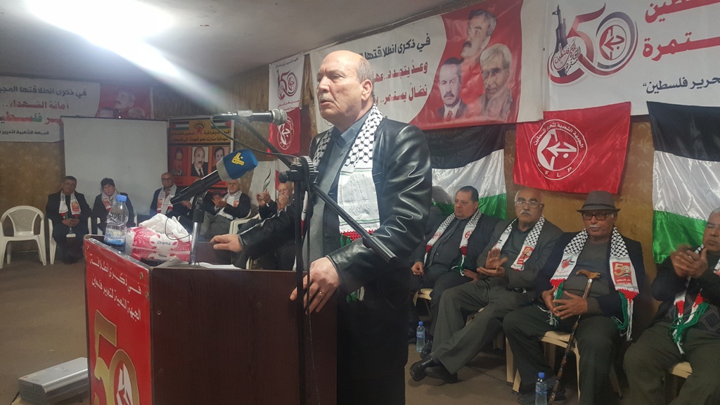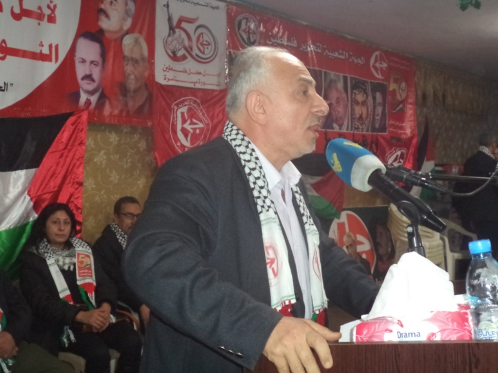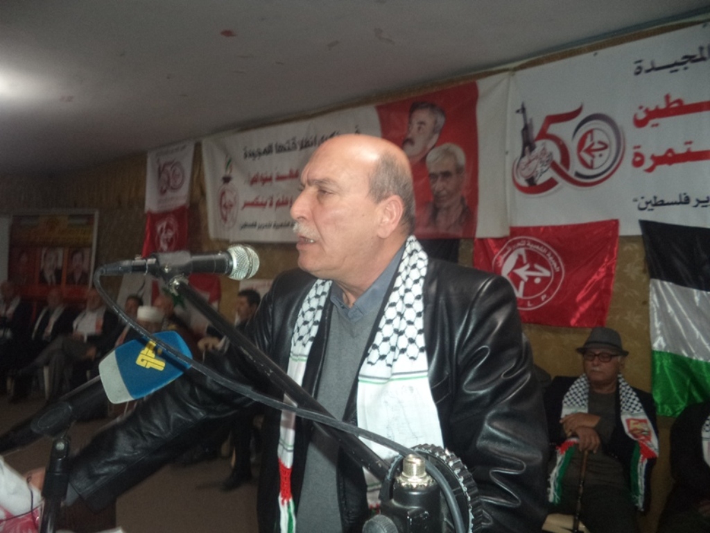 مشيرًا في كلامه إلى أن الخطر الصهيوني لا يمس فلسطين فحسب، بل يمس الأمة بأسرها، و ها هي الجماهير العربية خرجت بأغلبية العواصم العربية ، لتؤكد ارتباطها العميق والوثيق بالقضية الفلسطينية، على رغم تواطؤ النظام الرسمي العربي، لذلك لا بد من استعادة البعد العربي، والقومي للقضية الفلسطينة. كما أشار إلى أن الجبهة الشعبية ربطت ما بين التحرر و المضمون الاجتماعي، فالثورة حتى تنتصر، فهي تعتمد على أبناء المخيمات، على الفقراء، على الكادحين، والمسحوقين المرتبطين بالثورة، وأهداف الثورة حتى النهاية، لأنه أمام هذا الوضع الصعب يتضح أن هناك استحالة للوصول إلى حل سياسي مع هذا الكيان. وبعد قرار ترامب، نقول: إن أمريكا لم تعد وسيطًا نزيهًا ، وهي لم تكن في يوم من الأيام وسيطًا نزيهًا، مشيرا إلى أن الجبهة الشعبية تريد توحيد الصفوف، مؤكدًا على أن هذا الكيان الصهيوني، يقوم بالقضاء على الشعب الفلسطيني بأكمله، مشيرا إلى ضرورة ترميم البيت الفلسطيني، من خلال الإعلان الواضح والصريح بإلغاء اتفاقات أوسلو، وكل ما ترتب عنها من نتائج و مصاعب، وعلى السلطة أن تدفن اتفاق أوسلو الميت، وسحب الاعتراف بالكيان الصهيوني، والاعتراف بإسرائيل من قبل السلطة الفلسطينية، كما يجب على الشعب الفلسطيني أن يعمل على أساس انتفاضة فلسطينية جذرية، متواصلة، وتشكيل قيادة وطنية موحدة، انتفاضة من كافة الفصائل الفلسطينية من دون استثناء، وممارسة كل أشكال النضال حتى نوصل الكيان الصهيوني لقناعة أن استمرار احتلاله لأرضنا مكلف بشريا واقتصاديا، وأنه ليس أمامه إلا الرحيل، وإعادة الاعتبار لمنظمة التحرير الفلسطينية، وإعادة بناء مؤسساتها، وكل ما ينبثق عنها من أطر، لكي نستنهض طاقات 6.5 مليون فلسطيني في الشتات الذين يشعرون بأنه ليس لديهم مرجعية، ولا وجود لمن يحميهم، والعمل على عقد مجلس وطني شامل، بعيدا عن سطوة الاحتلال، وليس في رام الله، تشارك فيه كل القوى من دون استثناء، استعادة الوحدة الوطنية الفلسطينية الحقيقية، و ببرنامج يعيد الاعتبار لمعنى فلسطين من النهر إلى البحر، لا شرعية لهذا الكيان على أي بقعة من فلسطين.