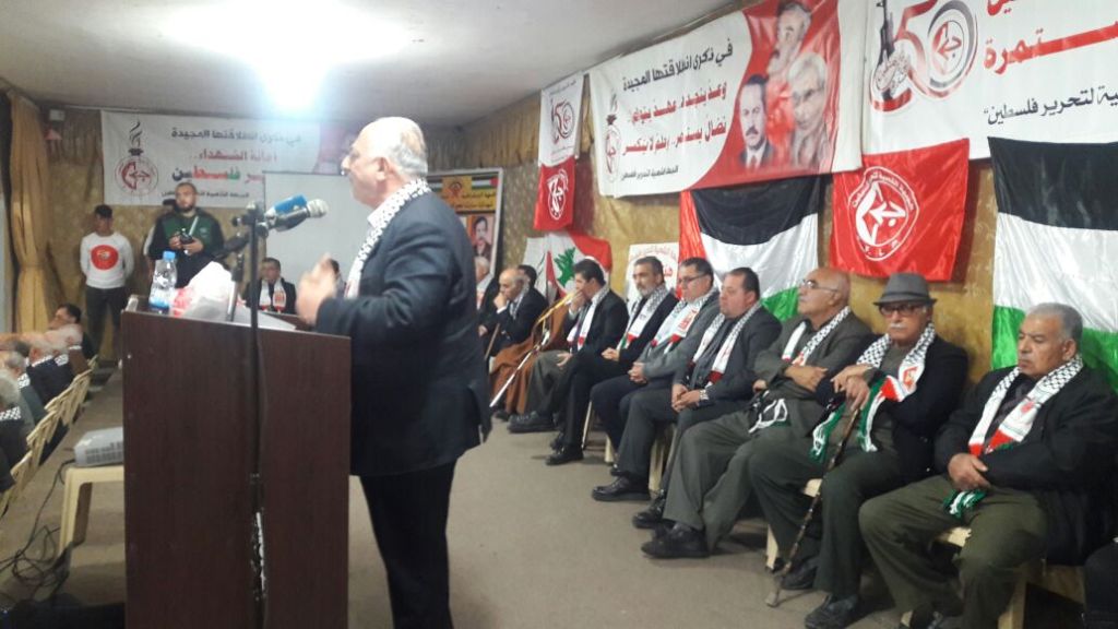 ثم كانت كلمة لمسؤول الملف الفلسطيني في حزب الله الحاج حسن حب الله، استهلها بتوجيه التحية للجبهة، في ذكرى انطلاقتها الخمسين، مشيرًا إلى أن المقاومة هدفها إجلاء العدو الصهيوني من أرضنا، وإنزال أكبر الخسائر البشرية فيه، وفي عام 2000 أثبتت المقاومة أنها قادرة على هزيمة الاحتلال، و أخرجت الاحتلال من لبنان بالقو،ة تحت وقع الضربات العسكرية، وما جرى في سوريا والعراق وسائر الأقطار العربية، هو من أجل حماية الكيان الصهيوني، ولأجل ضرب المقاومة وداعميها من الدول الداعمة للمقاومة ، و بعد ما حصل تبين أنه من أجل إبعاد الأمة العربية عن فلسطين، وجاء قرار ترامب، ليعيد بجهله وحماقته قضية فلسطين إلى الصدارة، كما أشار إلى أن قرار نقل السفارة الأمريكية إلى القدس ليس جديدا، إنما جاء إعلانه بجرأة كبيرة ووقاحة، ونحن بالمقاومة الإسلامية لا نؤمن باستعادة الحقوق بالمفاوضات، لأن أمريكا عدونا، وتعتبر المقاومة إرهابا، وهي راعية للإرهاب و داعمة أساسية للكيان الصهيوني، وعلينا أن نسقط كل القرارات الصادرة بحق الفلسطينيين والقدس، و نبقى في حالة انتفاضة دائمة، ونقاوم ولا نستسلم أبدا .
