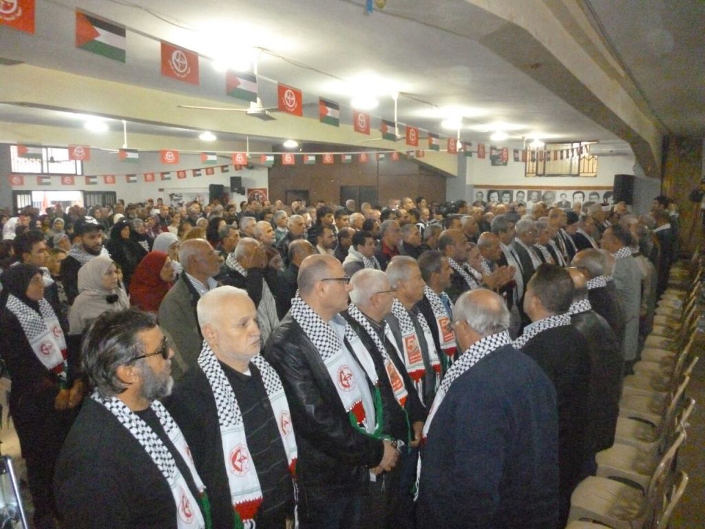 وقد ختم كلامه بالقول: إننا في الجبهة الشعبية جزء من محور المقاومة، ونحن في قلب هذا المحور، وهذا الكيان الصهيوني، ومن خلفه ترامب يشعرون بقلق، و يعيشون أزمة وجودية، و يحسبون ألف حساب لسلاح المقاومة في لبنان و فلسطين، موجها التحية للثورة الإسلامية في إيران، وسوريا، وإلى حزب الله، وسيد المقاومة حسن نصرالله، وعاهد الشهداء جورج حبش، و ابو علي مصطفى، وأبو ماهر اليماني، وأبو أمل، وجيفارة غزة، وعماد مغنية، وغسان كنفاني، وسناء محيدلي، كما حيا الأسرى، وفي مقدمتهم الأمين العام الرفيق أحمد سعدات، مؤكدا مواصلة الكفاح و المقاومة حتى يرتفع علم فلسطين فوق القدس، و كامل الأرض الفلسطينية .