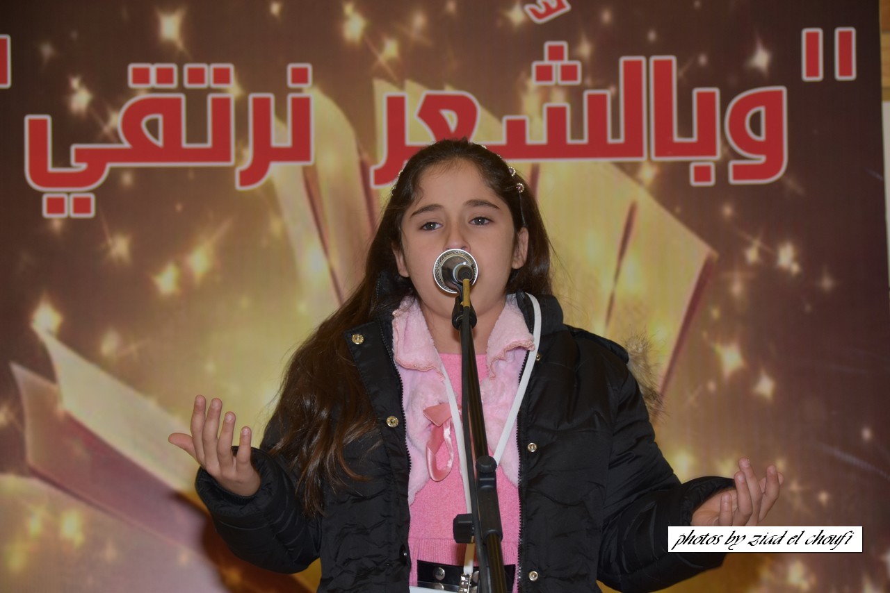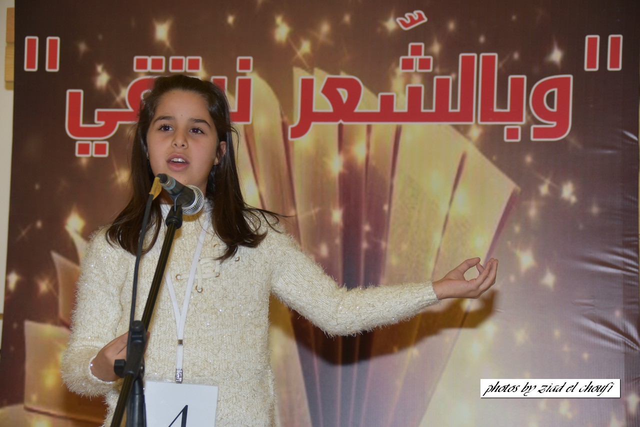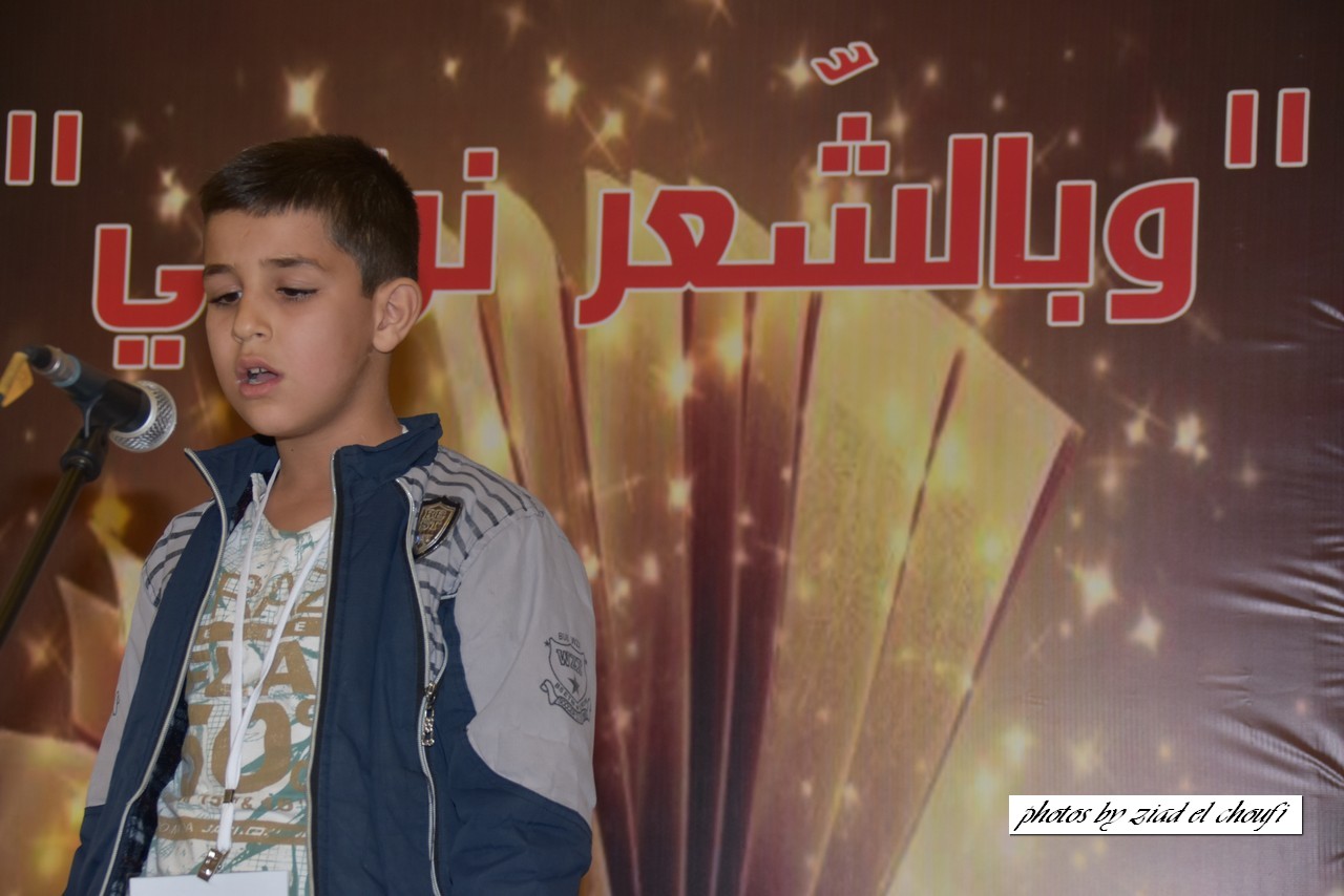 حيث تبارى 16 طالباً من ثمانية مدارس في القاء الشعر بأشراف لجنة تحكيم مؤلفة من دكاترة واساتذة مختصين .