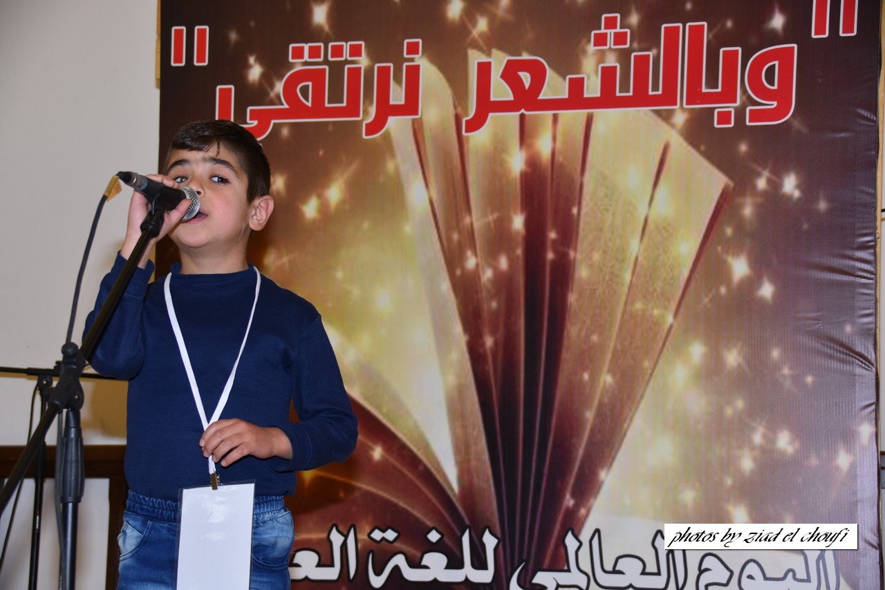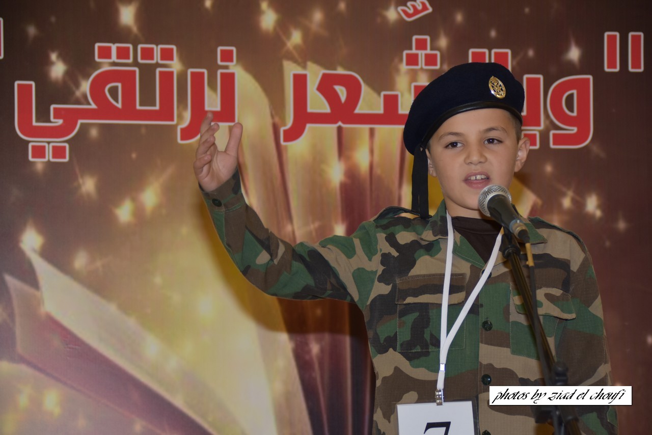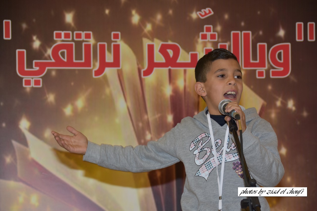 حيث تبارى 16 طالباً من ثمانية مدارس في القاء الشعر بأشراف لجنة تحكيم مؤلفة من دكاترة واساتذة مختصين .