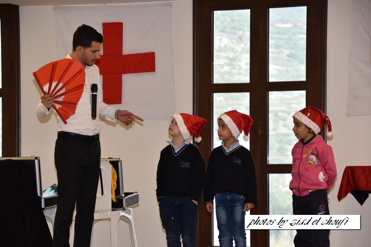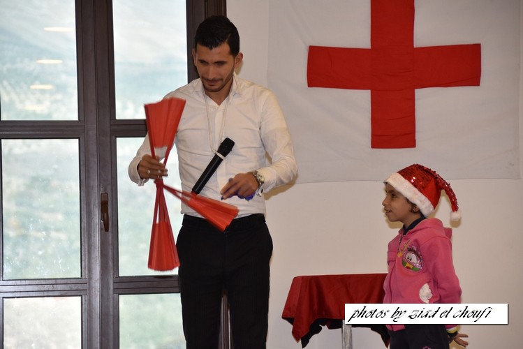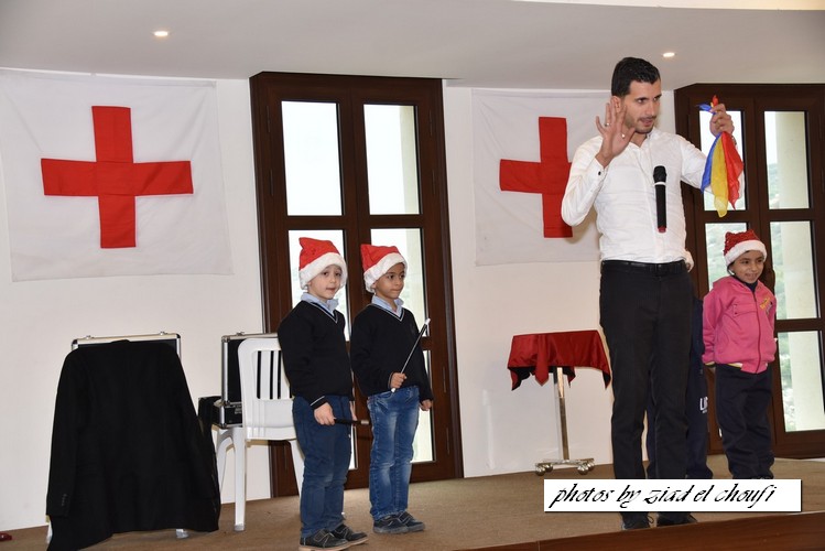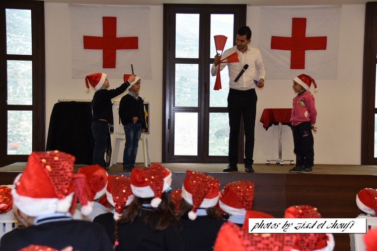 نظمت وحدة ادارة الكوارث في الصليب الاحمر اللبناني فرع حاصبيا حفلاً ترفيهياً للاطفال لمناسبة الاعياد المجيدة ، شارك في الاحتفال 100 طفل من الصفوف الابتدائية من مدرستي حاصبيا الرسمية والثانوية اللبنانية الحديثة . أحيى الحفل الساحر DNA الذي قدم عروضاً سحرية وألعاب خفة وأختتم الحفل بتقديم هدايا للاطفال .
