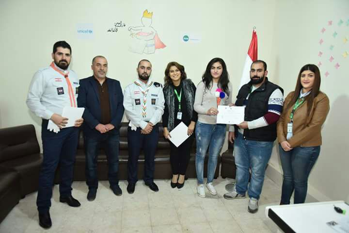 وبإسم جمعية الكشاف الديمقراطي ومركز عين قنيا الثقافي، قدم مفوض الإعلام والعلاقات العامة في الكشاف طارق حديفه وقائد فوج عين قنيا مجيد سنان درعاً تقديرياً لجمعية AVSI .
