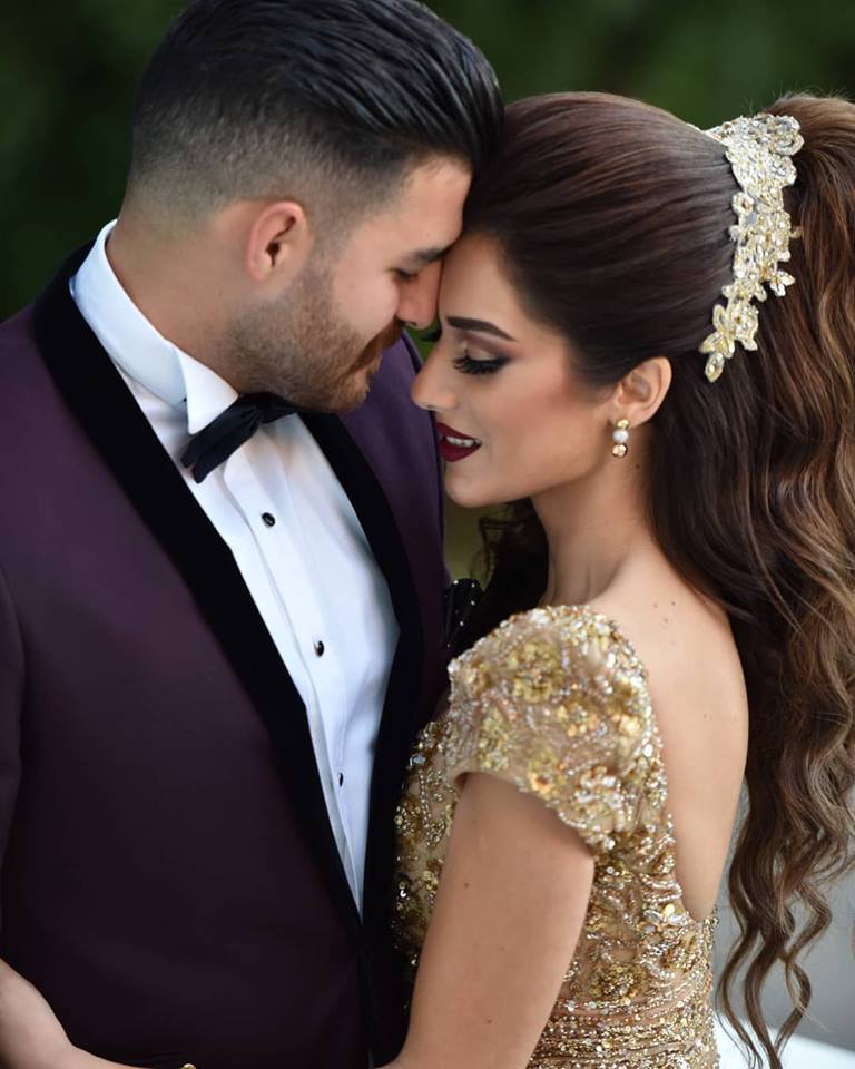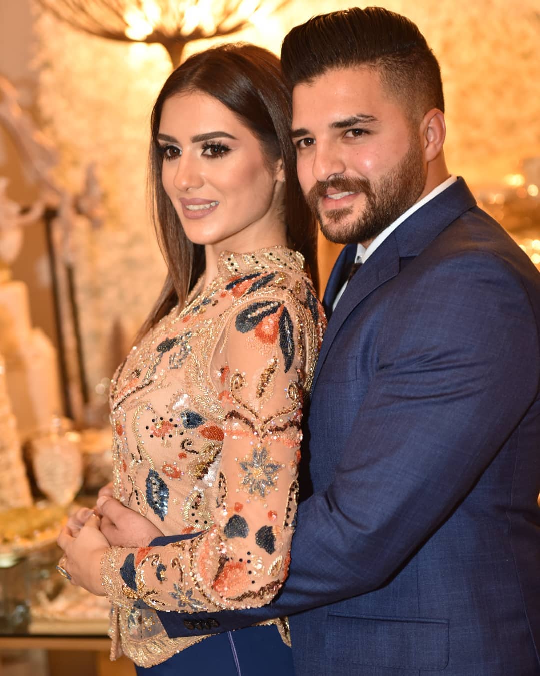 العروسين الشابين الملازم أول عامر علي خشيش ومصممة الازياء الحسناء آية حسين صادق