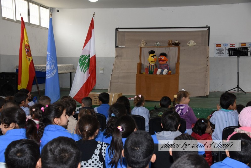 واختتم الحفل بمسرح دمى قدمه تجمع الشباب الصاعد في ابل السقي وتقديم هدايا لطلاب المدرسة تقدمة من الكتيبة الاسبانية .