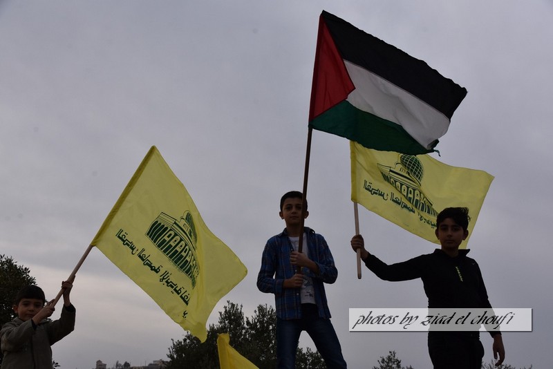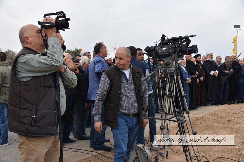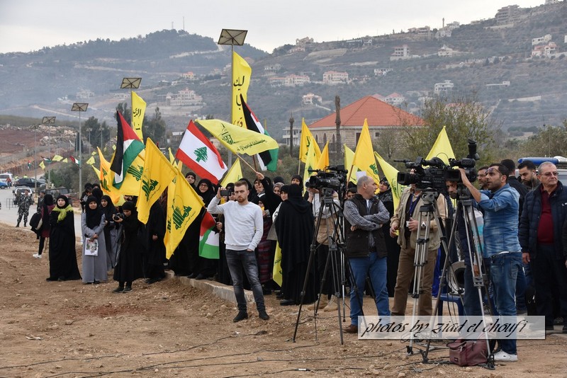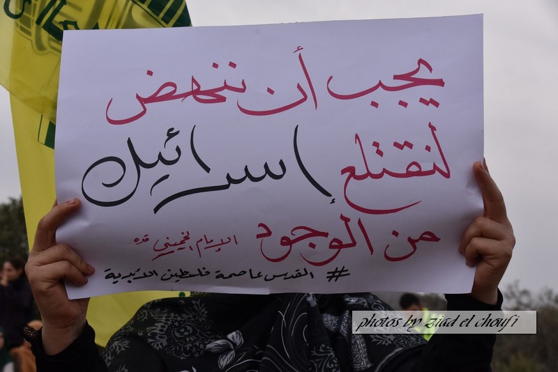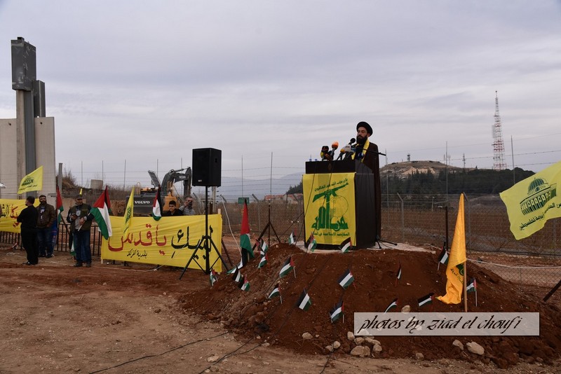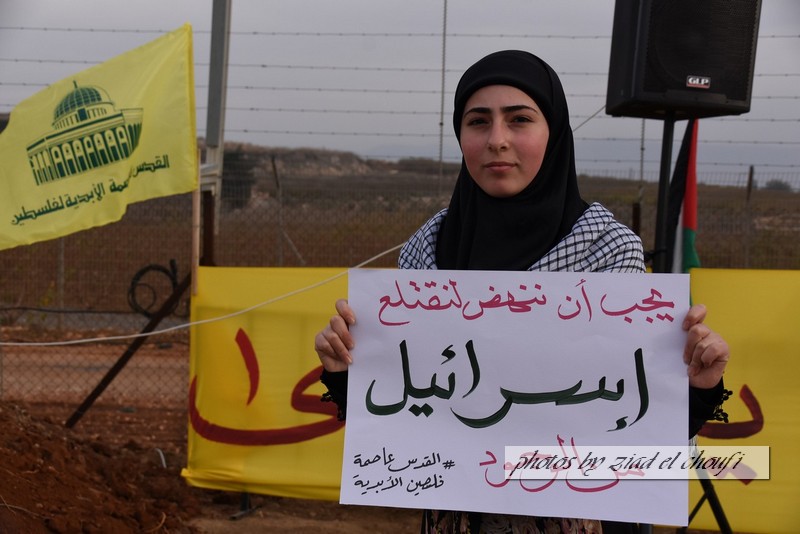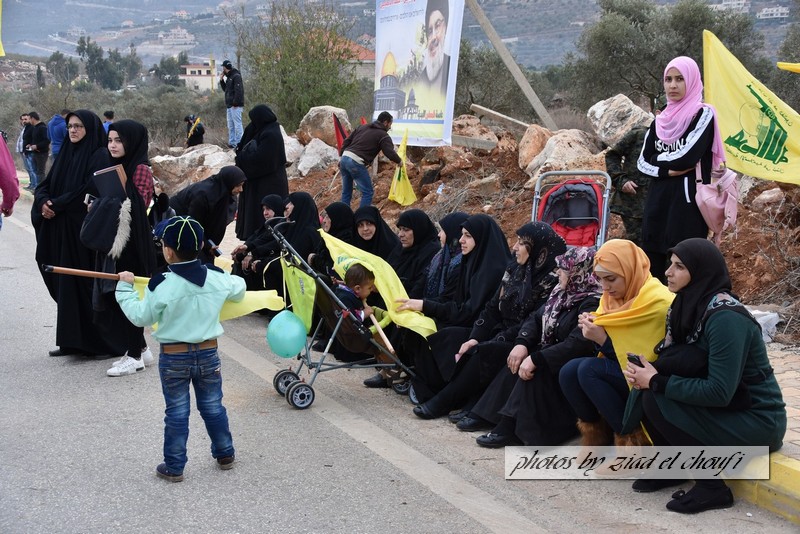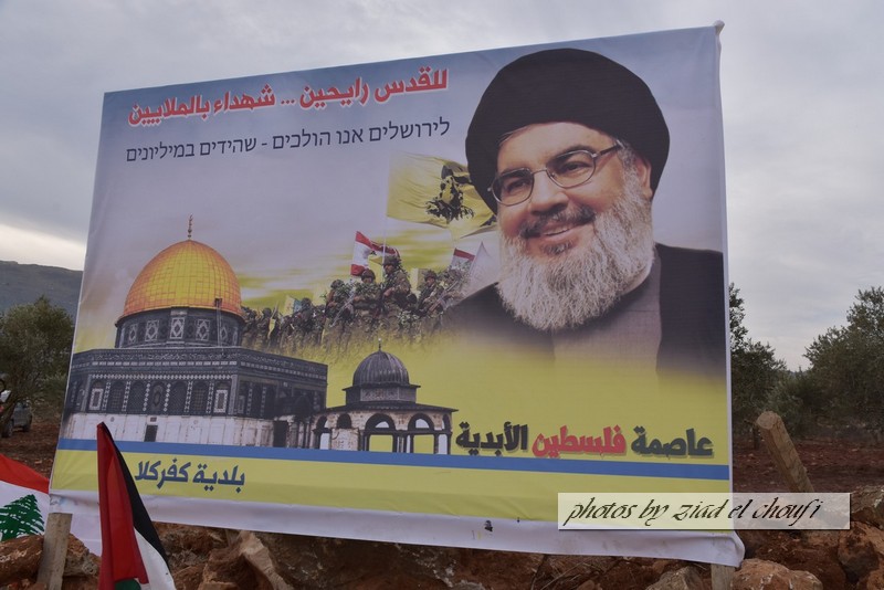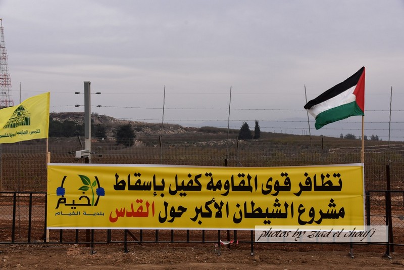 نظم حزب الله، وقفة تضامنية نصرة للاقصى والقدس، في كفركلا عند جدار فاطمة على الحدود بمحاذاة السياج التقني الفاصل بين لبنان والاراضي الفلسطينية المحتلة، بمشاركة فعاليات منطقتي مرجعيون وحاصبيا، احتجاجا على قرار الرئيس الاميركي دونالد ترامب بالاعتراف بالقدس عاصمة لكيان العدو الاسرائيلي، تقدمهم النائبان قاسم هاشم وعلي فياض، رجال دين من مختلف الطوائف، رؤساء بلديات ومخاتير المنطقة، ممثلون عن القوى والاحزاب السياسية، ووفود شعبية من قرى وبلدات المنطقة، والهيئات النسائية في حزب الله، وقد حمل المشاركون اعلام لبنان وفلسطين ورايات حزب الله والقدس ولافتات منددة بالقرار الاميركي كما هتفوا ضد اميركا واسرائيل واحرقوا علميهما.