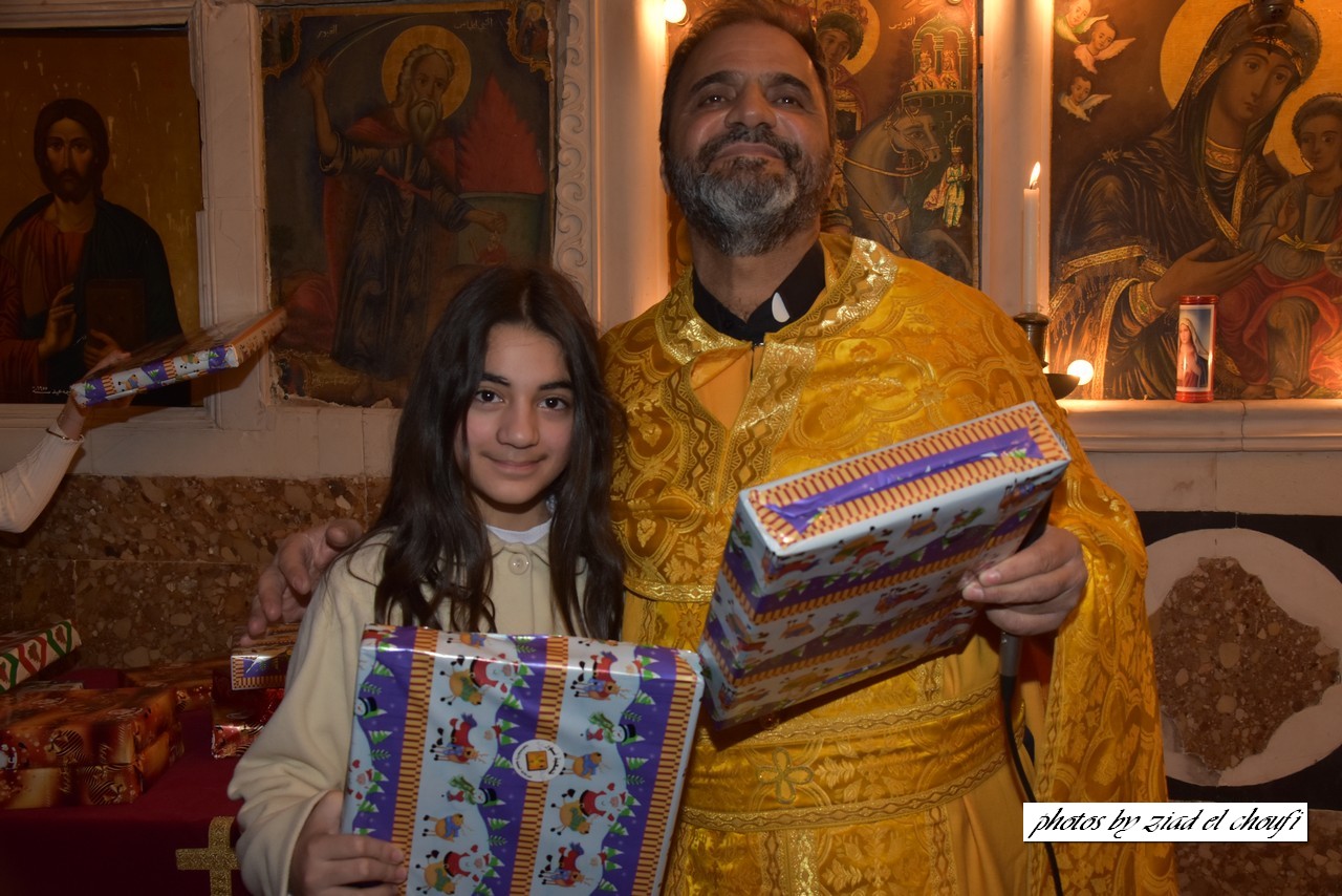 وفي نهاية القداس وزعت الهدايا على الاطفال المقدمة من رئيسة جمعية نور السيدة مارلين حردان.