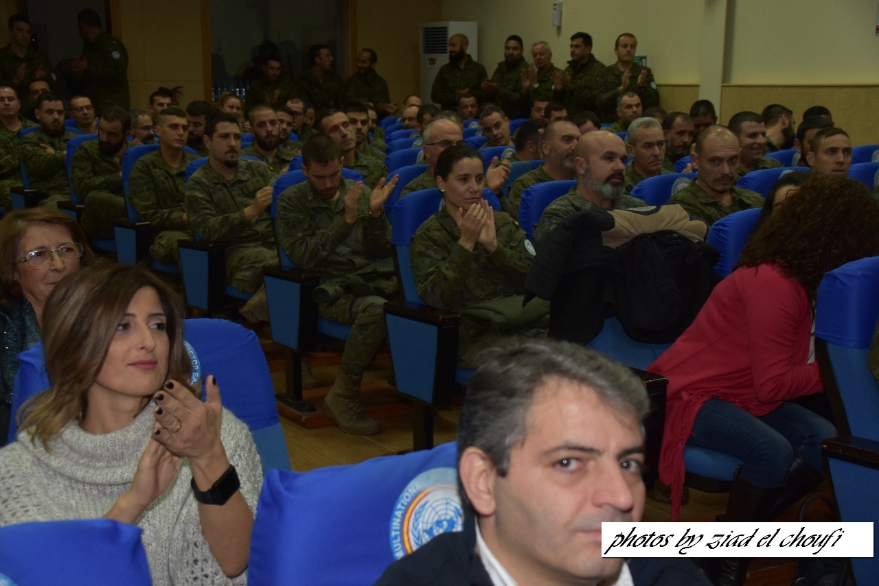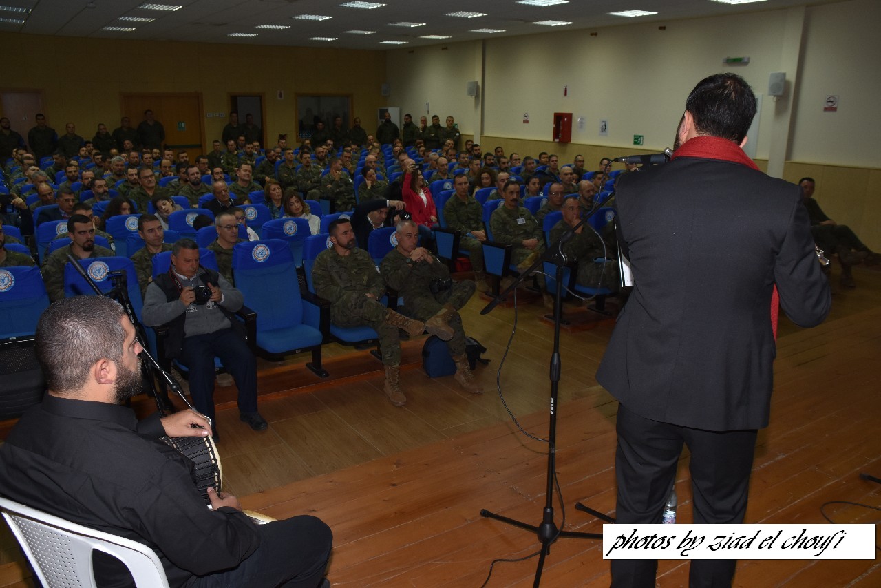 وفي كلمة تعريف من الفرقة أبدت فرحها لتقديم ريسيتال ميلادي مجاني للكتيبة الاسبانية الذين يخدمون السلام في جنوب لبنان ، وهم يقضون العيد بعيداً عن منازلهم وعائلاتهم من أجل احلال السلام والامان للشعب اللبناني .