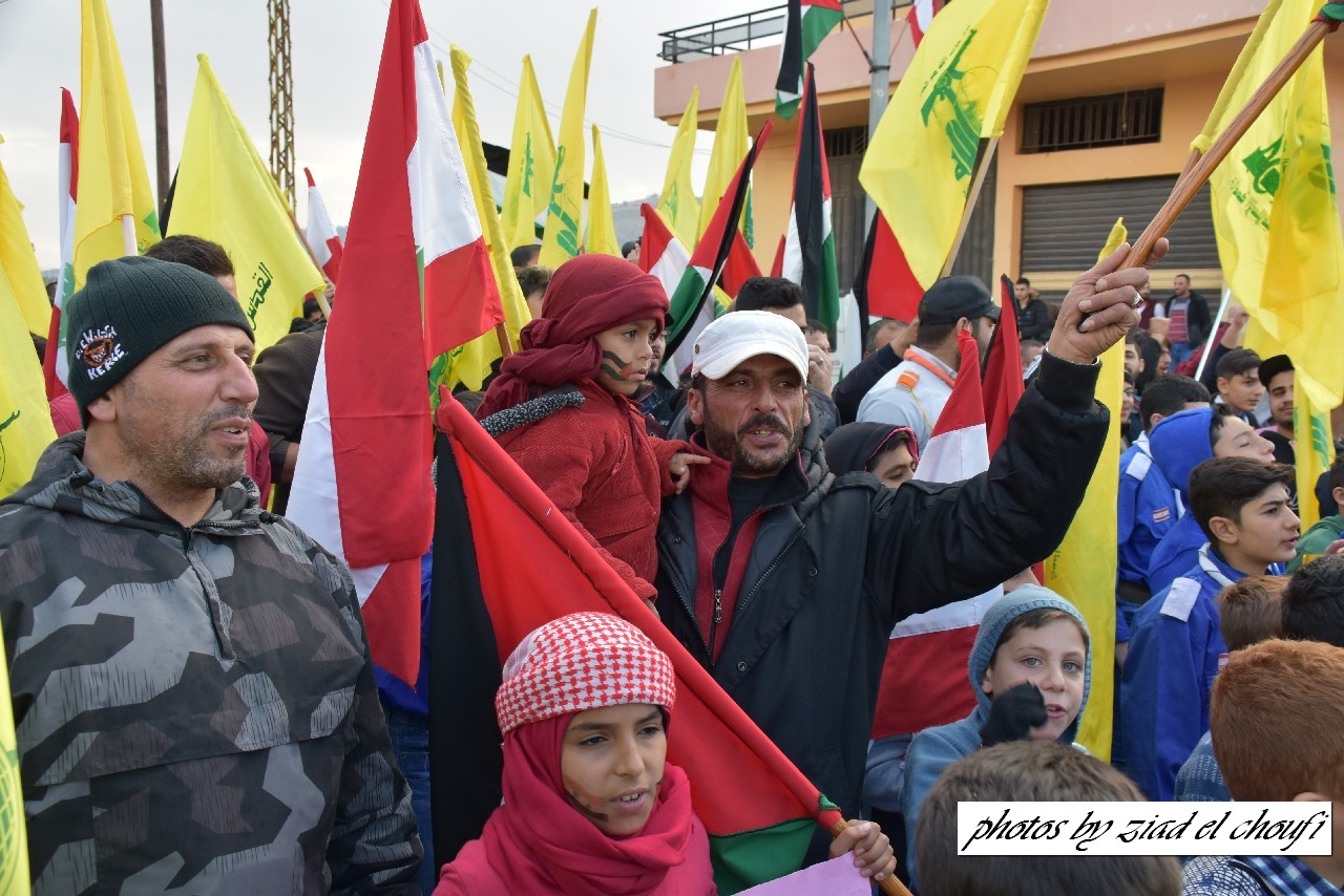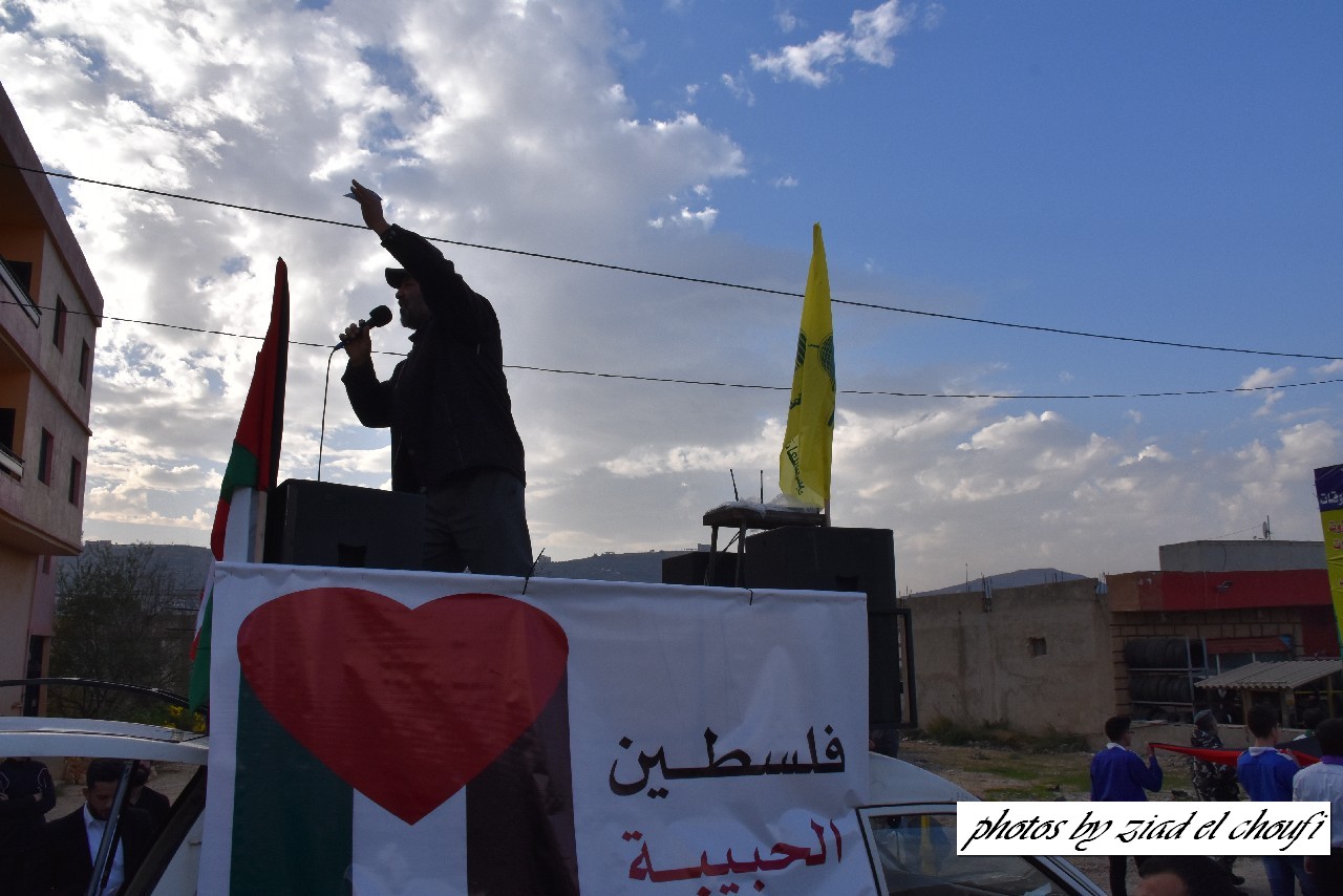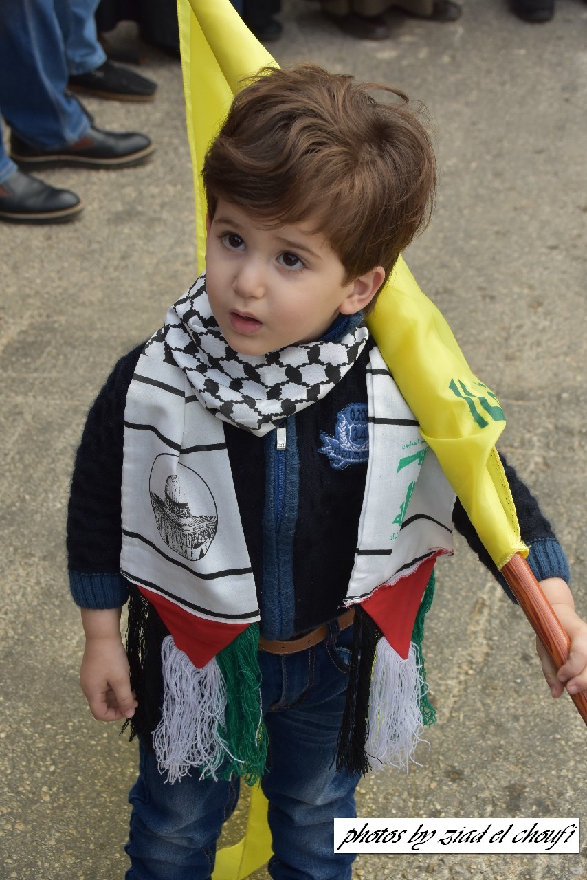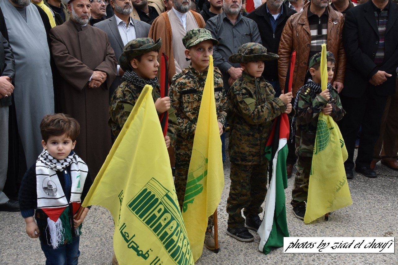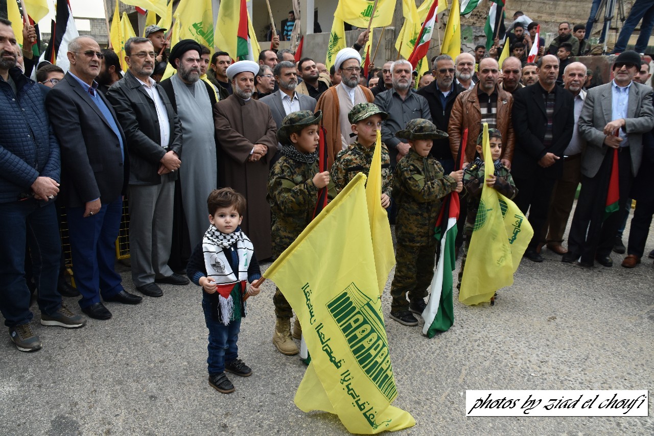اقام حزب الله تظاهرة عند الحدود بمحاذاة جدار فاطمة نصرة للقدس الشريف وفلسطين ، حملت عنوان القدس عاصمة أبدية لفلسطين ، شارك فيها الشيخ حسن عز الدين مسؤول العلاقات الخارجية في حزب الله ، رئيس اتحاد بلديات جبل عامل علي الزين وعدد من رؤساء بلديات ومخاتير الاتحاد، ورجال دين وأئمة وفاعليات وممثلي القوى والاحزاب السياسية في المنطقة وعوائل الشهدا، وحشد من المواطنين القادمين من مختلف قرى جبل عامل حاملين الاعلام اللبنانية والفلسطينية ورايات حزب الله وعلم كبير لفلسطين ، وسط إجراءات امنية مشددة للجيش وقوى الامن في مكان الاحتفال حفاظا على السلامة العامة ومراقبة من قوات اليونيفيل وفريق مراقبي الهدنة الدوليين، ومراقبة من داخل الحدود لجنود العدو بواسطة الكاميرات المنتشرة على طول الجدار، الذي سبق أن اطلق (العدو) إرهابا قنبلتين صوتيتين باتجاه عدد من الشبان قاموا بالاقتراب من السياج التقني .قبل بدء التظاهرة.