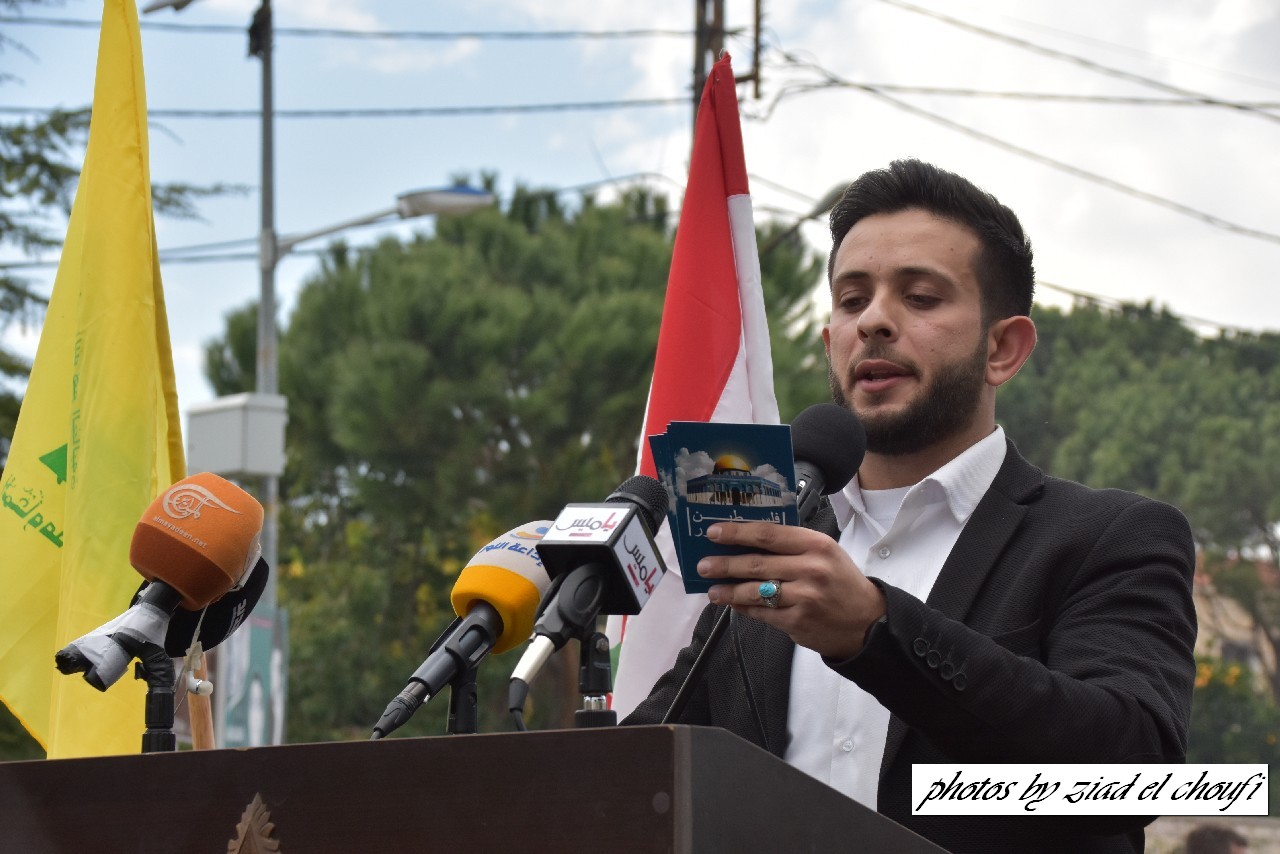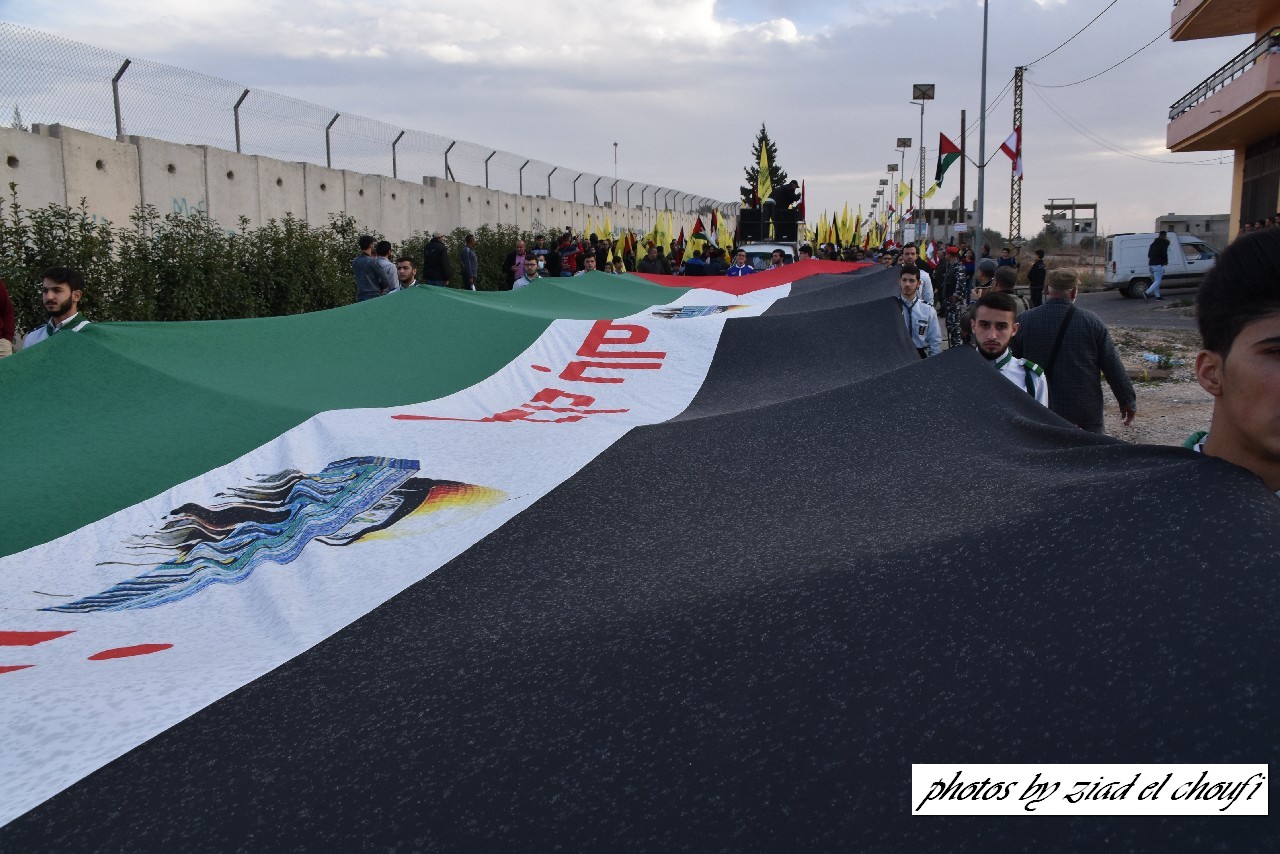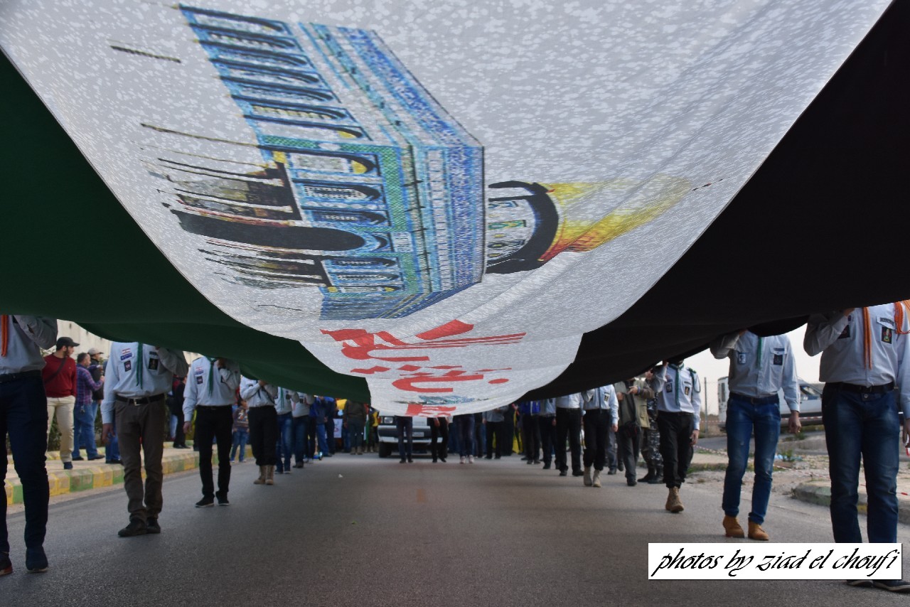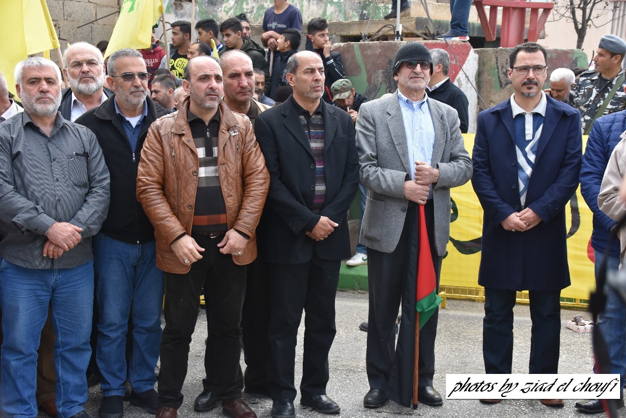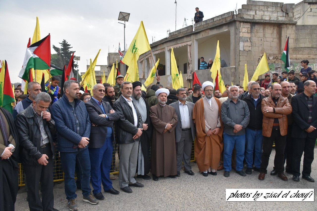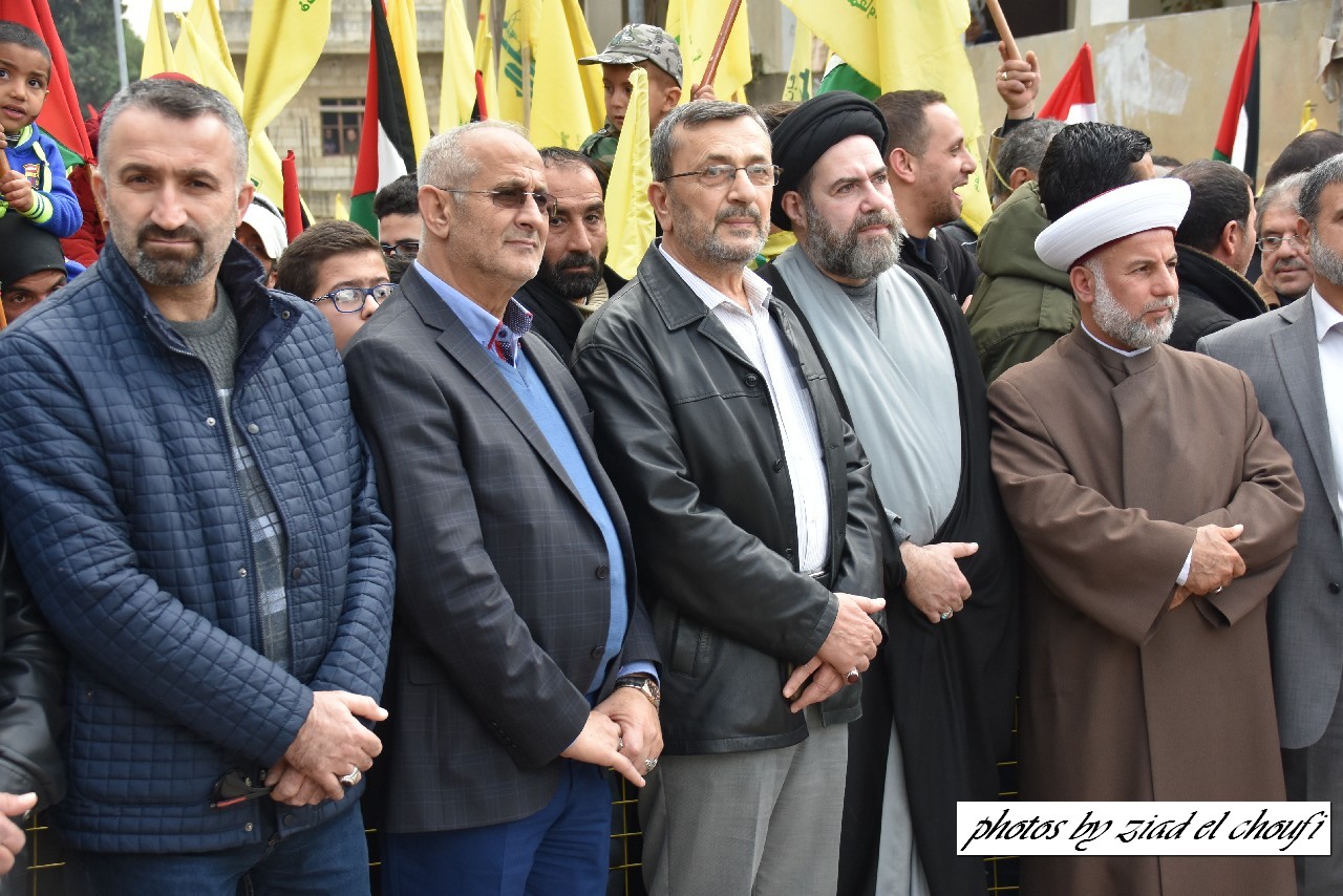 اقام حزب الله تظاهرة عند الحدود بمحاذاة جدار فاطمة نصرة للقدس الشريف وفلسطين ، حملت عنوان القدس عاصمة أبدية لفلسطين ، شارك فيها الشيخ حسن عز الدين مسؤول العلاقات الخارجية في حزب الله ، رئيس اتحاد بلديات جبل عامل علي الزين وعدد من رؤساء بلديات ومخاتير الاتحاد، ورجال دين وأئمة وفاعليات وممثلي القوى والاحزاب السياسية في المنطقة وعوائل الشهدا، وحشد من المواطنين القادمين من مختلف قرى جبل عامل حاملين الاعلام اللبنانية والفلسطينية ورايات حزب الله وعلم كبير لفلسطين ، وسط إجراءات امنية مشددة للجيش وقوى الامن في مكان الاحتفال حفاظا على السلامة العامة ومراقبة من قوات اليونيفيل وفريق مراقبي الهدنة الدوليين، ومراقبة من داخل الحدود لجنود العدو بواسطة الكاميرات المنتشرة على طول الجدار، الذي سبق أن اطلق (العدو) إرهابا قنبلتين صوتيتين باتجاه عدد من الشبان قاموا بالاقتراب من السياج التقني .قبل بدء التظاهرة.