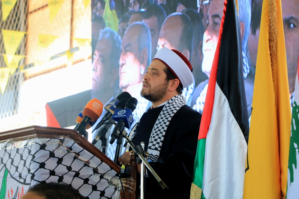 وبعد مقدمة ثورية من عريف المهرجان جهاد الحنفي توالى إلقاء الكلمات. فكانت الكلمة الأولى لمفتي صور وأقضيتها الشيخ مدرار الحبال حيث حيَّا فيها الشعب الفلسطيني المرابط والمدافع عن أرضه ومقدّساته، وخصَّ بالذكر أهلنا في مدينة القدس الذين يرابطون في بيت المقدس يدافعون عن المقدسات المسيحية والإسلامية.