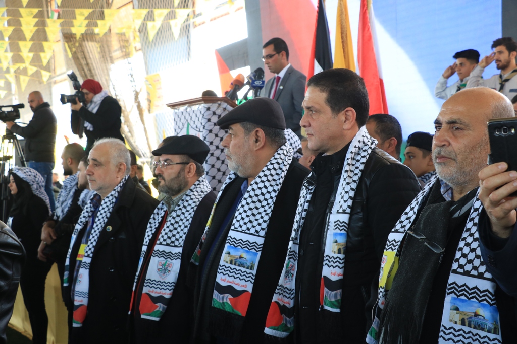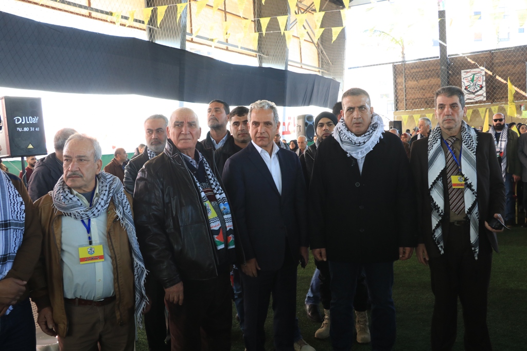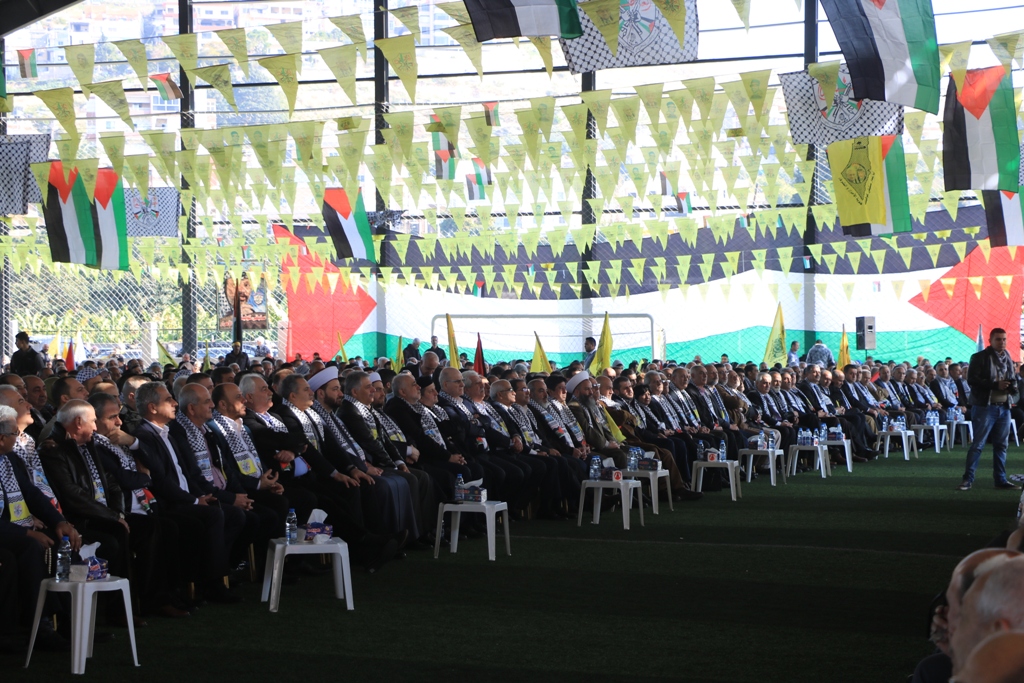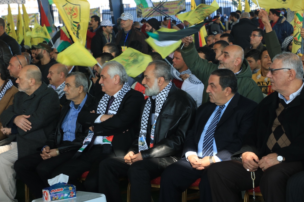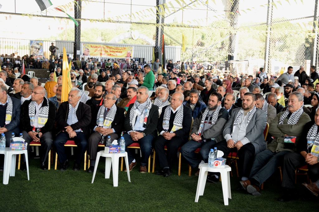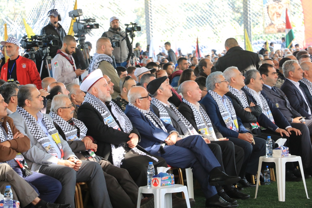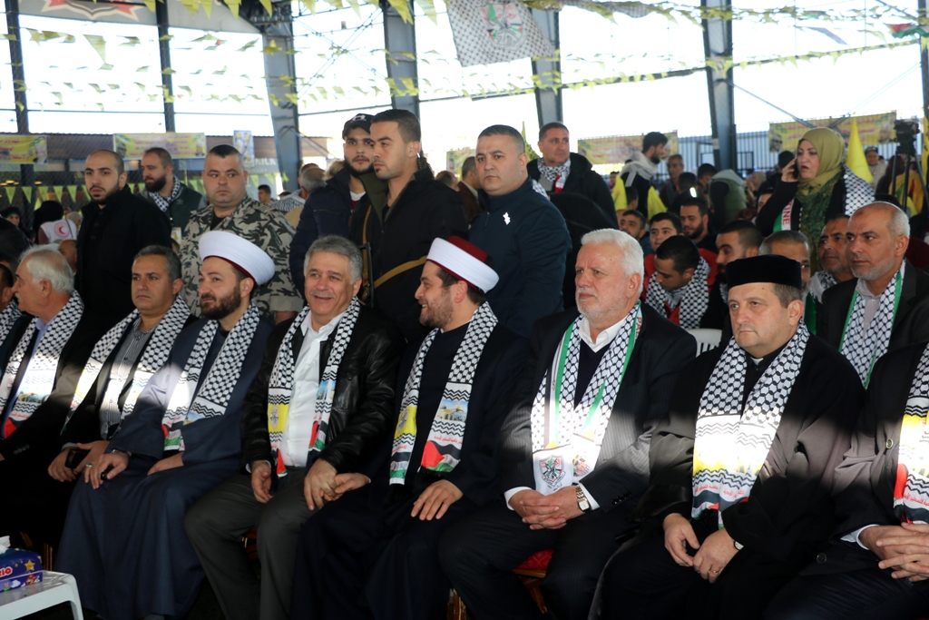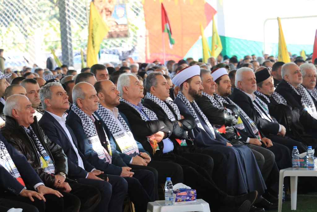 تقدَّم الحضور سعادة سفير دولة فلسطين لدى الجمهورية اللبنانية أشرف دبور، وأمين سر حركة "فتح" وفصائل "م.ت.ف" في لبنان الحاج فتحي أبو العردات، وأعضاء قيادة حركة "فتح" في الساحة اللبنانية، وأمين سر حركة "فتح" - إقليم لبنان وأعضاء قيادة الإقليم، وسماحة مفتي صور وأقضيتها الشيخ مدرار الحبال، وسماحة مفتي صيدا وأقضيتها الشيخ سليم سوسان ممثَّلاً بالشيخ إبراهيم الديماسي، ونيافة المطران مارون سيقلي ممثلاً مطران صيدا ودير القمر للروم الملكيين الكاثوليك إيلي بشارة الحداد، ونائب الأمين العام لـ"الجبهة الديمقراطية لتحرير فلسطين" فهد سليمان، نزار الرواس ممثلاً النائب بهية الحريري، محمد ضاهر ممثلاً الدكتور أسامة سعد، النقيب هاني القادري ممثلاً قائد منطقة الجنوب الإقليمية في قوى الأمن الداخلي العميد سمير شحادة، رئيس مكتب مخابرات الجيش في مدينة صيدا العميد ممدوح صعب، مسؤول حزب الله في صيدا الشيخ زيد ضاهر، رئيس تيار الفجر الحاج عبدالله الترياقي، وممثِّلون عن القوى والأحزاب الوطنية والإسلامية اللبنانية والفلسطينية، الأجهزة الأمنية اللبنانية، إلى جانب أمناء سر حركة "فتح" في المناطق التنظيمية في لبنان وأعضاء قيادة المناطق، بالإضافة لأمناء سر الشُّعب التنظيمية وأعضاء قيادة الشعب التنظيمية، وقيادة وكوادر المكاتب الحركية و"الاتحاد العام للمرأة الفلسطينية" – فرع لبنان، وجمعية "الهلال الأحمر الفلسطيني"، وجمعية "الكشّافة والمرشدات الفلسطينية"، وحشدٍ كبيرٍ من أبناء شعبنا الفلسطيني البطل القادم من أنحاء لبنان كافّةً.