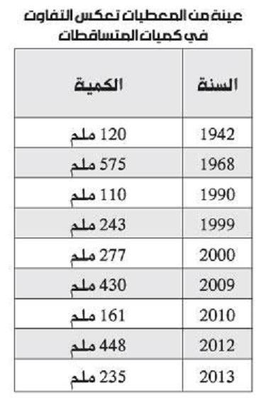 عينة من المعطيات تعكس التفاوت في كميات المتساقطات