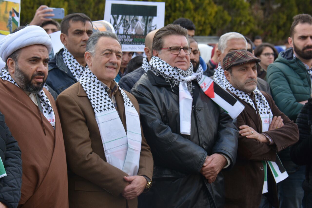 كلمة ترحيب وتقديم من عضو المجلس البلدي الدكتور عباس وهبي، ثمّ تحدث رئيس بلدية النبطية الدكتور احمد كحيل فقال: “من النبطية الى القدس تحية، ووقفة رمزية وصرخة نطلقها من هذه المدينة الحسينية المقاومة في وجه الظالم الاميركي وقراره الغاشم، ان القدس مدينة عربية وفلسطين عربية، ولا وجود لإسرائيل حتى يكون لها عاصمة، ولن تخيفنا فرقعات اعلامية هنا وتصفيق هناك”.