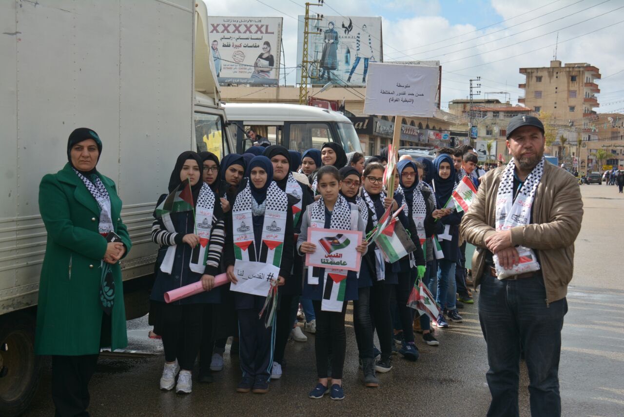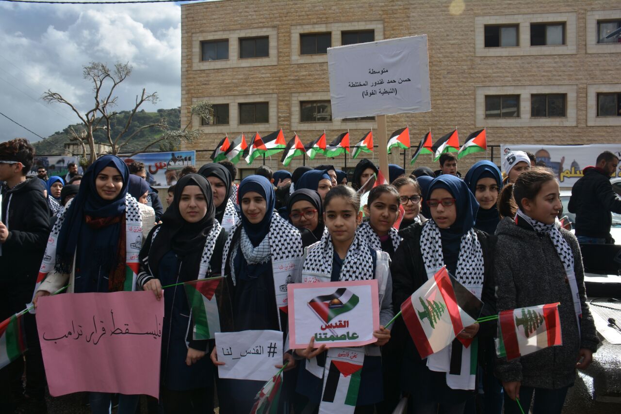 برعاية محافظ النبطية القاضي محمود المولى نظمت بلدية النبطية وقفة تضامنية مع القدس أمام مبنى مهنية النبطية تحت شعار “من النبطية … للقدس تحية” وذلك “تنديداً بالقرار الاميركي الجائر وتضامنا مع القضية الفلسطينية المحقة”، وذلك أمام مبنى المهنية الفنية العالية في النبطية.