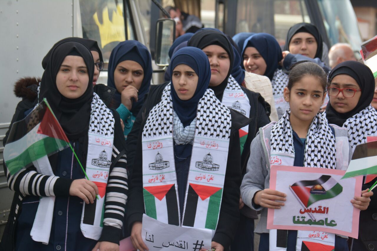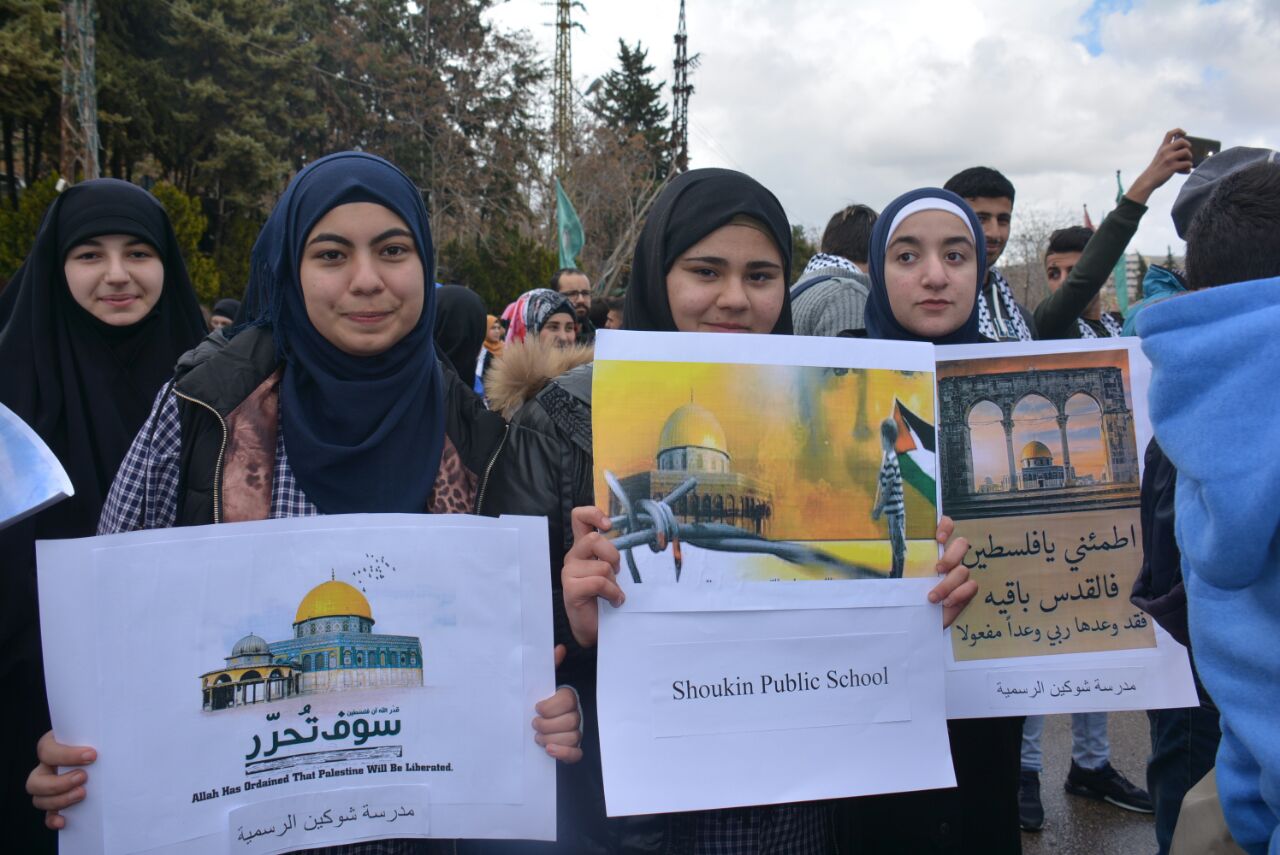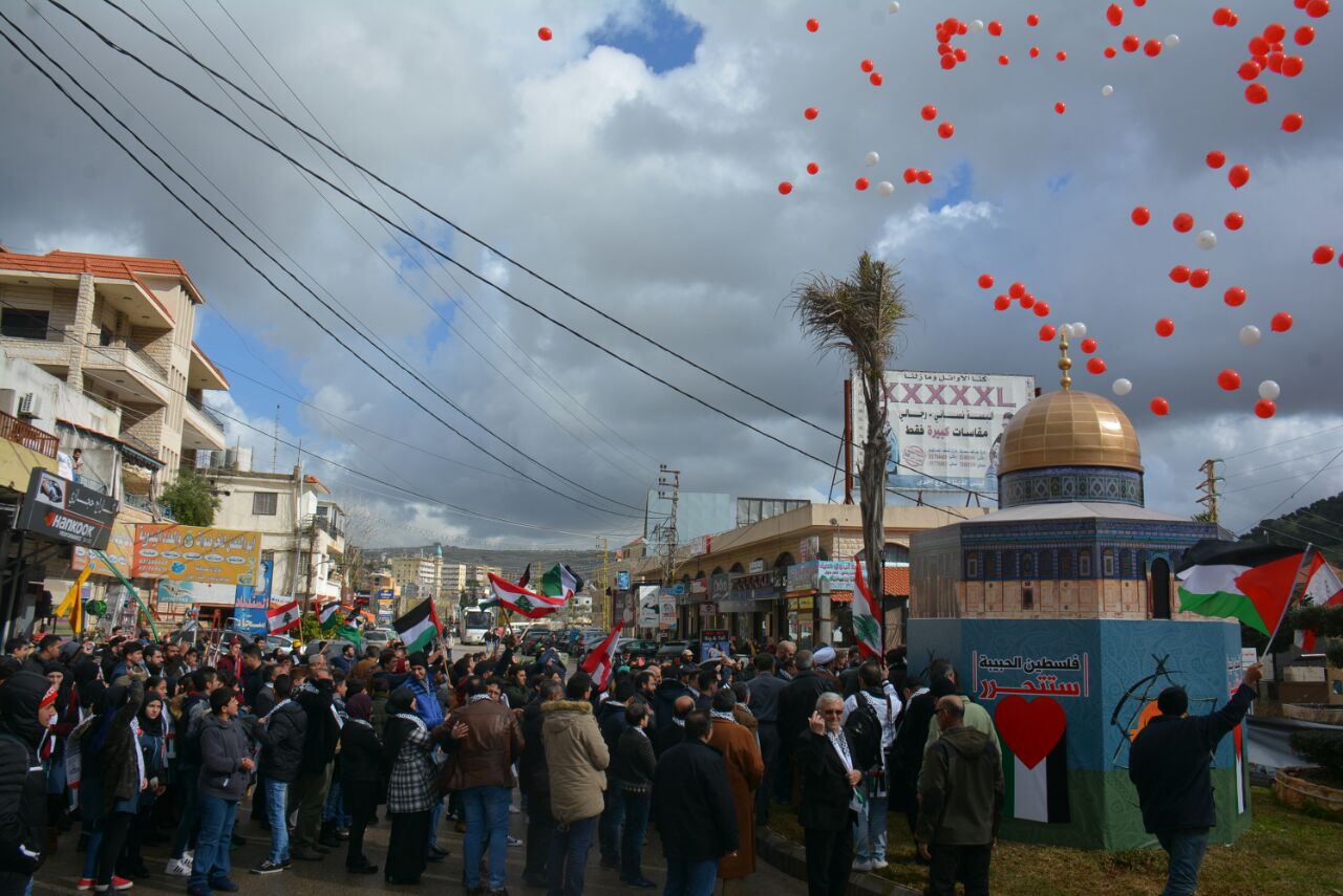 وحمل المشاركون أعلاماً لبنانية وفلسطينية وصوراً للمسجد الاقصى، ولافتات تؤكد في نصوصها أن القدس عاصمة أبدية لفلسطين