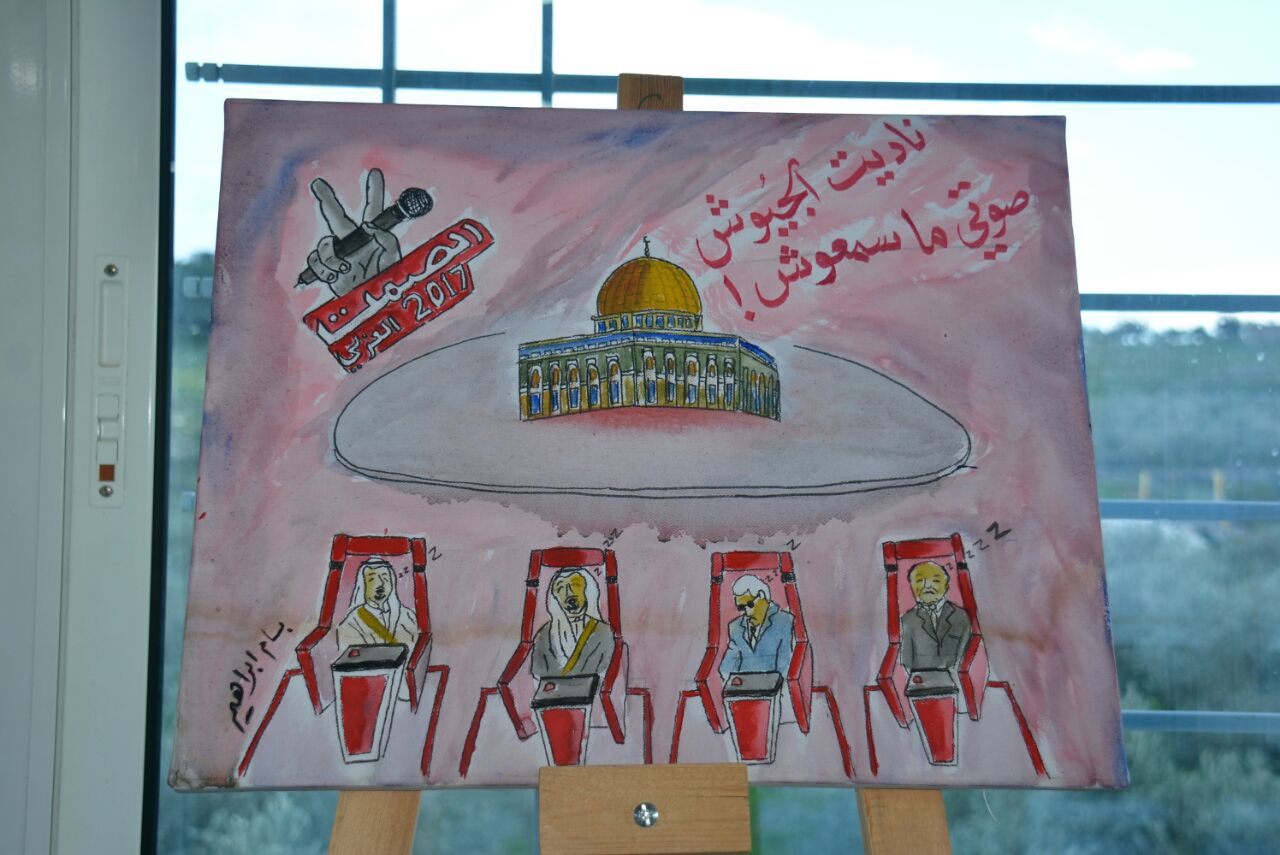 ضم المعرض حوالي ١٠٠ عمل فني لما يزيد على ٦٠ فناناً كلها تتحدث عن القدس وفلسطين بلغة اللون والريشة وتعكس مشاعر وأحاسيس الفنانين تجاه معاناة الشعب الفلسطيني وتتحدث عن حبهم للقدس وإنتصارهم لها..