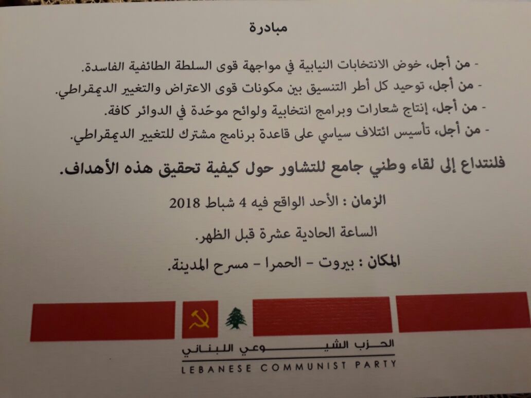 دعا الحزب الشيوعي اللبناني إلى لقاء وطني جامع للتشاور حول كيفية خوض الانتخابات النيابية عبر تأسيس إئتلاف سياسي وتوحيد الأطر والشعارات...