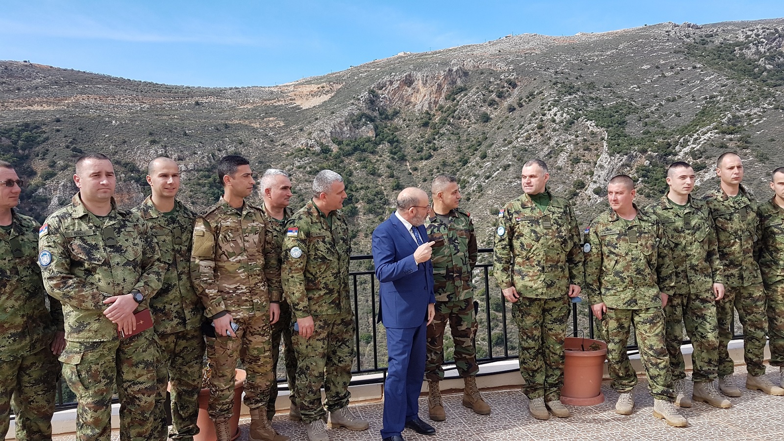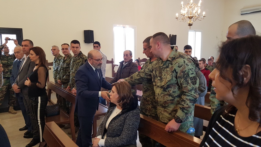 وفي ختام القداس، توجه الوزير والحضور الى قاعة الدير حيث كان لقاء مع الأهالي وفعاليات المنطقة، وقدم المطران كفوري للوزير أيقونة القديس ميما العجائبية و كتابا عن تاريخ الدير، كما جرى التقاط الصور التذكارية مع الاهالي ومع عناصر من الكتيبة الصربية عن شرفة الدير.