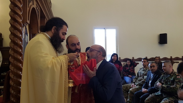 وبعد قراءة الانجيل المقدس، قام وزير الدفاع بنفسه بلم الصينية الكنيسة بنفسه، ثم القى المطران كفوري عظة بالمناسبة، اعرب فيها "عن سروره بوجود معالي الوزير الصراف في دير الشهيد القديس ماما للاشتراك في القداس الالهي للتبرك وطلب شفاعة القديس ماما. رافعا الصلاة من اجل لبنان ان يجتاز هذه المرحلة الصعبة من تاريخه بان ييبقى سليما معافى مرفوع الرأس كما يريده ابناؤه. كما اود ان نرفع الصلاة من اجل قائد البلاد فخامة رئيس الجمهورية العماد ميشال عون الذي يدير البلاد بحكمة قل نظيرها وان يبارك لبنان سيما اننا ندخل في مرحلة الصوم الاربعيني".