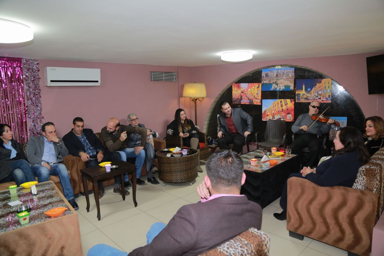 بقصائد زجلة ومحكية أحيا الشاعران محمد علوش ومحمد بنوت أمسية مميزة في كافيه لاغوس - المشرفية بمرافقة موسيقية من عازف الكمان خضر رجب بحضور حشد من الأصدقاء والشعراء والإعلاميين والمهتمين ، وبحضور فنانين تشكيليين عرب وتشكيليين من ملتقى الألوان الفني.