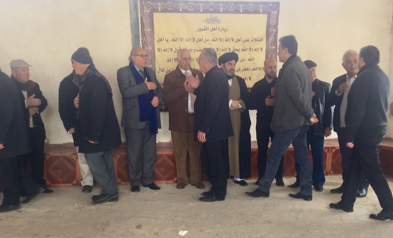 وكانت جموع الأهل والأقارب على موعد مع وصول جثمان الفقيد الى أمام حسينية البلدة في ضحى ذلك اليوم الحزين، حينها اتجه الموكب الجنائزي المهيب مخترقا الساحة الرئيسية للبلدة الى الجبانة.