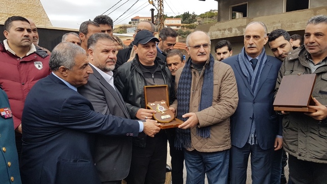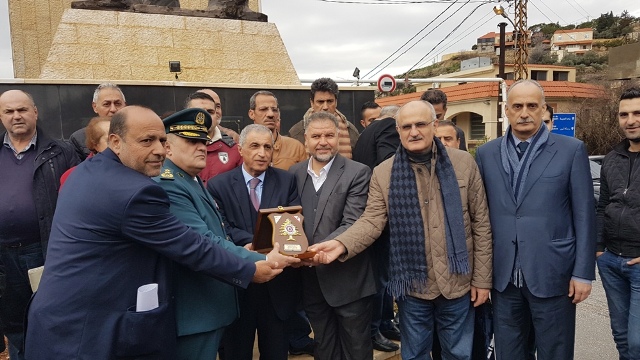 وفي ختام الاحتفال، قدم طاهر دروعاً تقديرية لكل من السيدة سعاد ارملة الشهيد ابو عساف والزميل علي شعيب وممثل قائد الجيش العقيد حمود.
