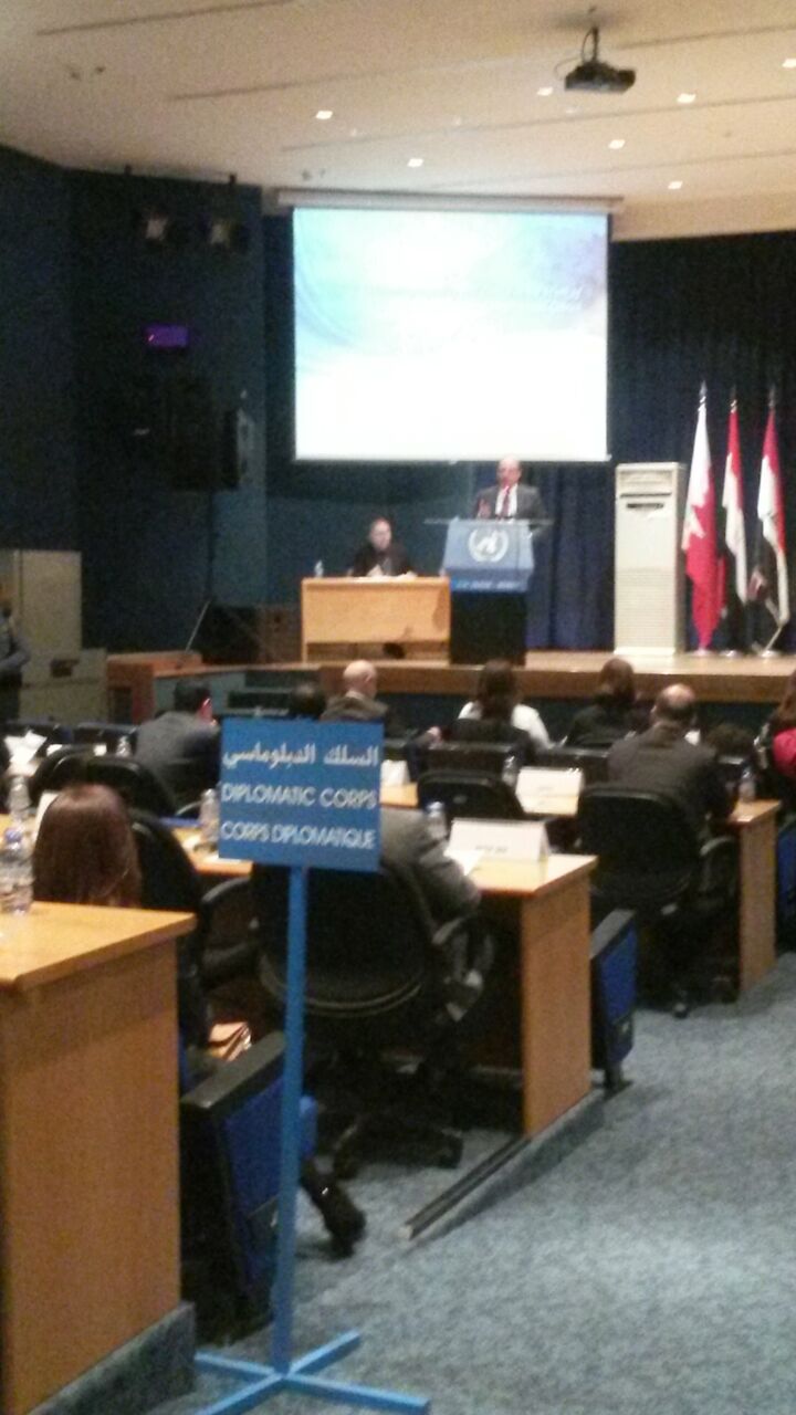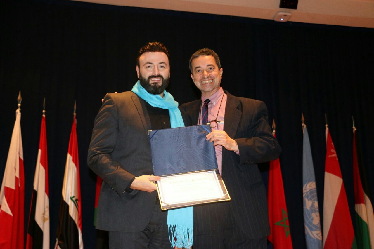وفي الختام، قدّم السيد فريديريك نيتو، مدير شعبة التنمية الاجتماعية في اللجنة الاقتصادية والاجتماعية لغربي آسيا (الإسكوا)، شهادة تقدير للفنان عبد النور كتحية شكر لمشاركته الغنائية.