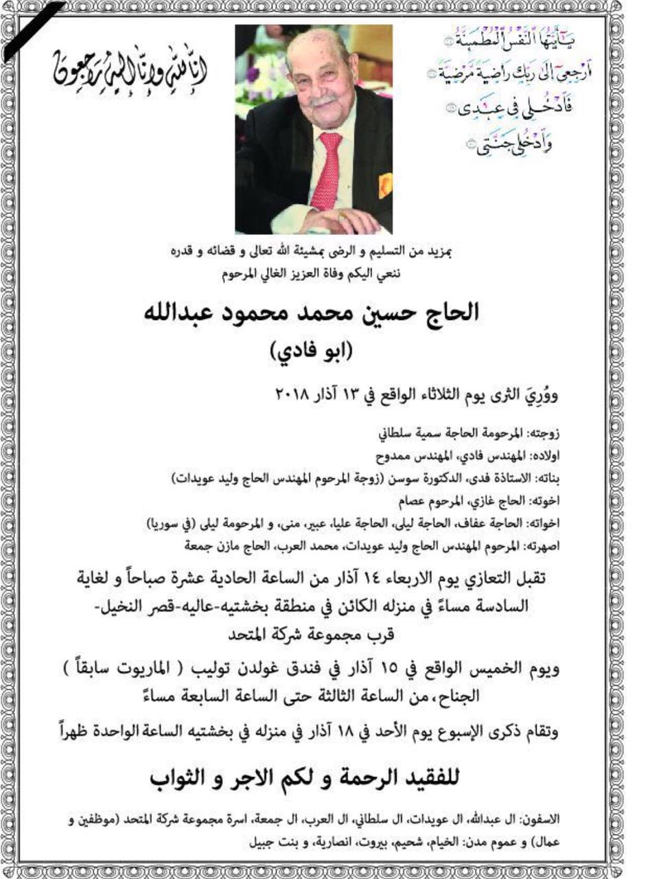 أسرة فقيدنا الغالي حسين محمد الحاج محمود عبدالله (أبو فادي)