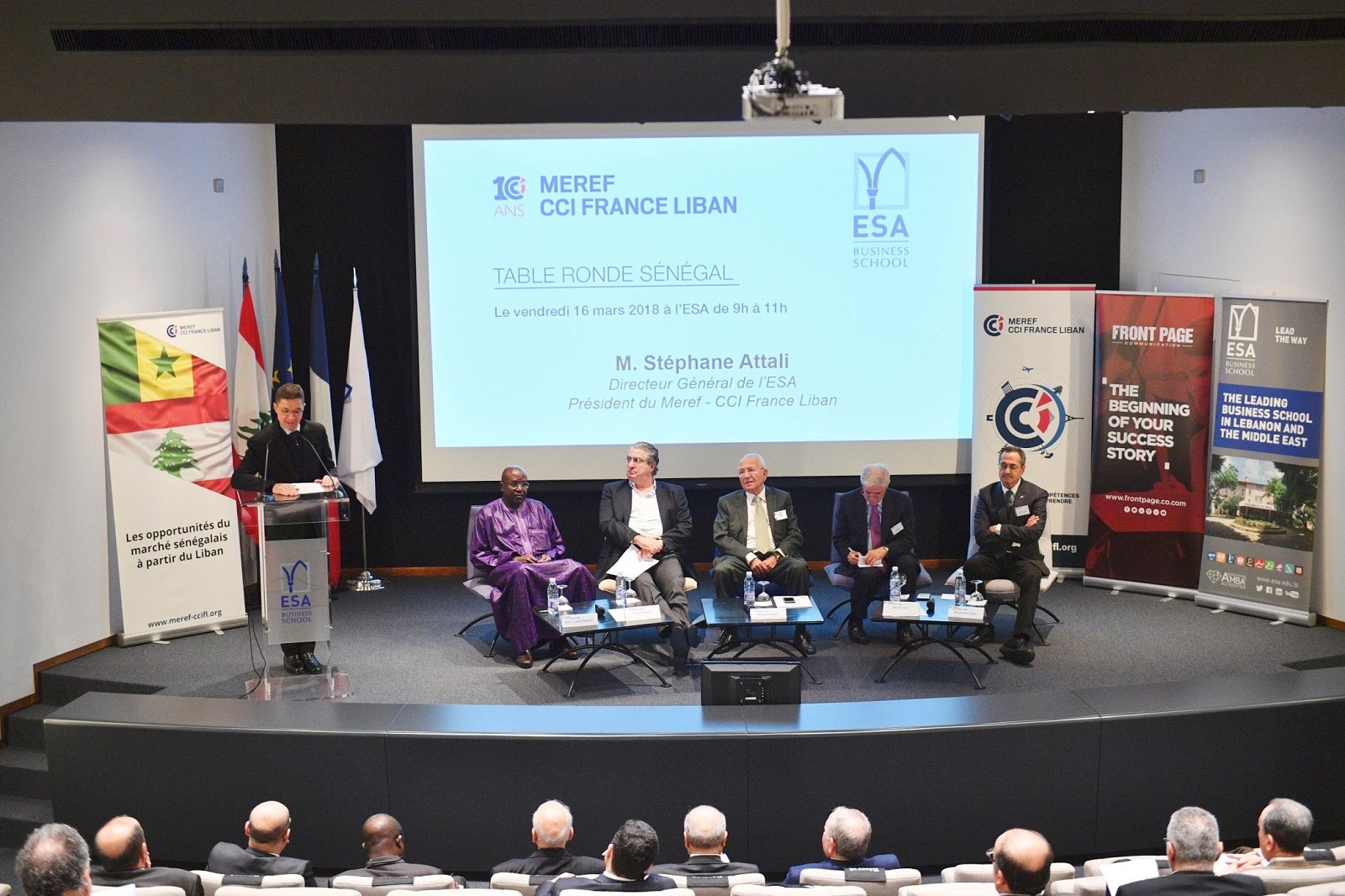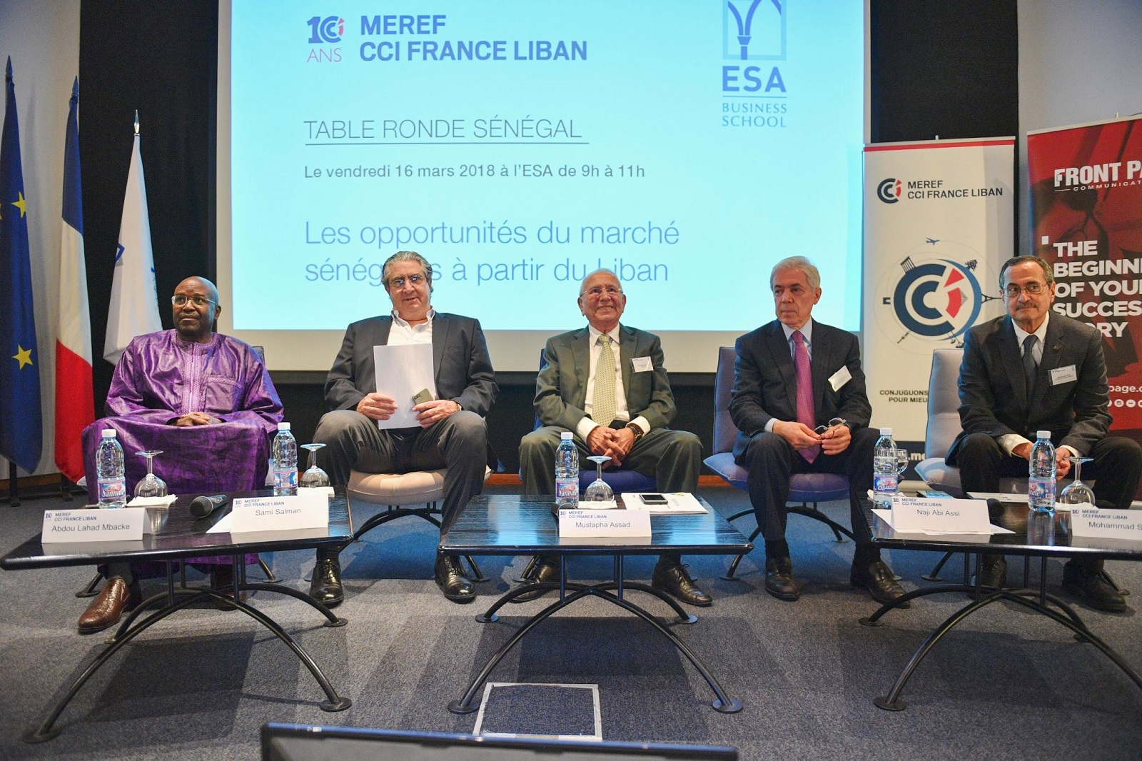 في إطار تعزيز الاستثمارات اللبنانية في السنغال، نظمت MEREF (حركة المؤسسات والممثليات الاقتصادية لفرنسا في لبنان) بالتعاون مع Front Page Communication ، يوم الجمعة 16 آذار/مارس في المعهد العالي للأعمال (ESA) طاولة مستديرة حول موضوع "فرص السوق السنغالية انطلاقاً من لبنان". استهلّت الجلسة بكلمة لسعادة السفير السيد عبد الأحد امباكي، سفير السنغال في لبنان، نقل من خلالها تحيات فخامة الرئيس السنغالي السيد ماكي سال إلى المتحدثين ورغبته في زيادة توطيد العلاقات بين بيروت وداكار. ثم تم بث شريط فيديو قصير، تلاه عرض للسياق الاقتصادي السنغالي والمسائل الاستراتيجية بين لبنان والسنغال.