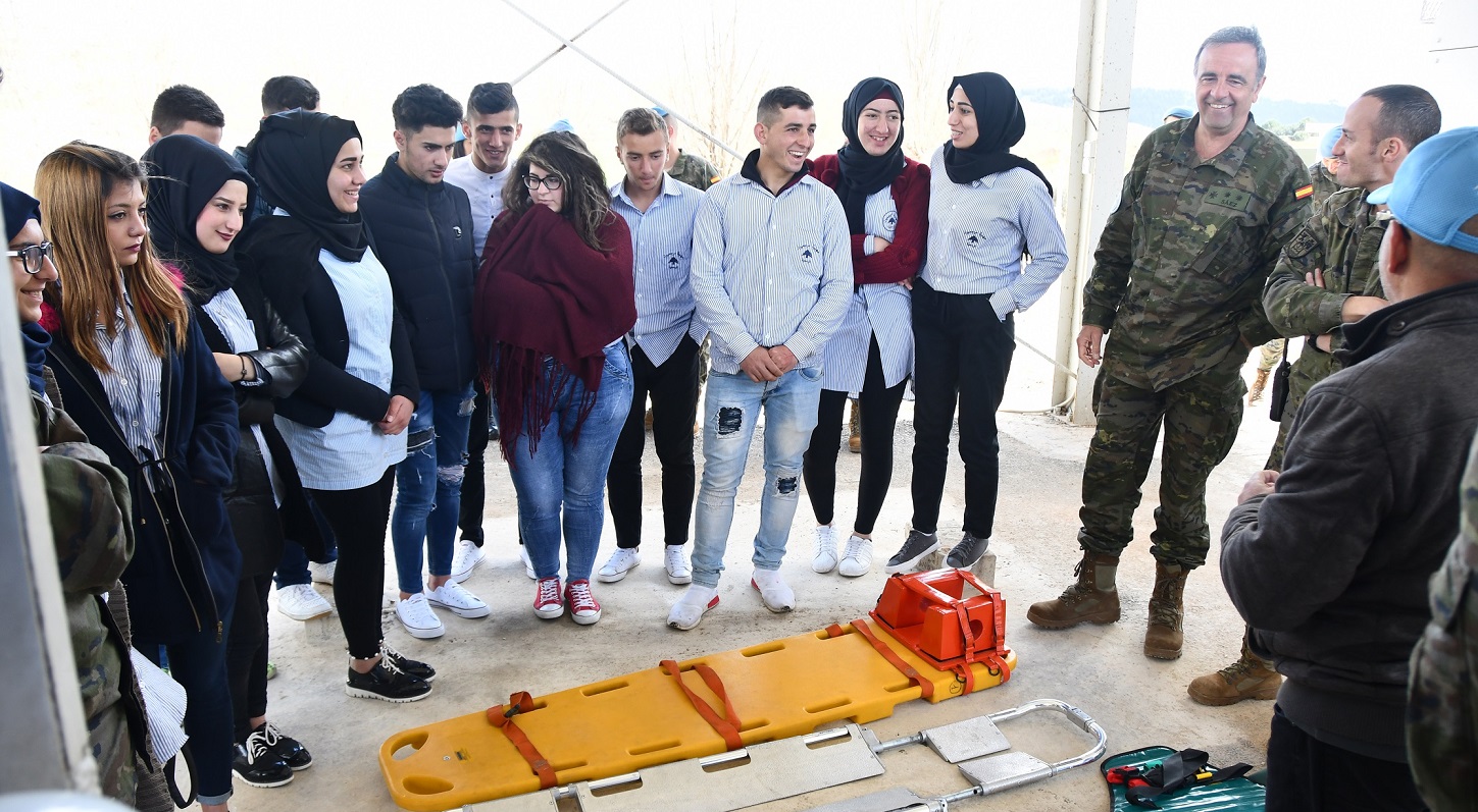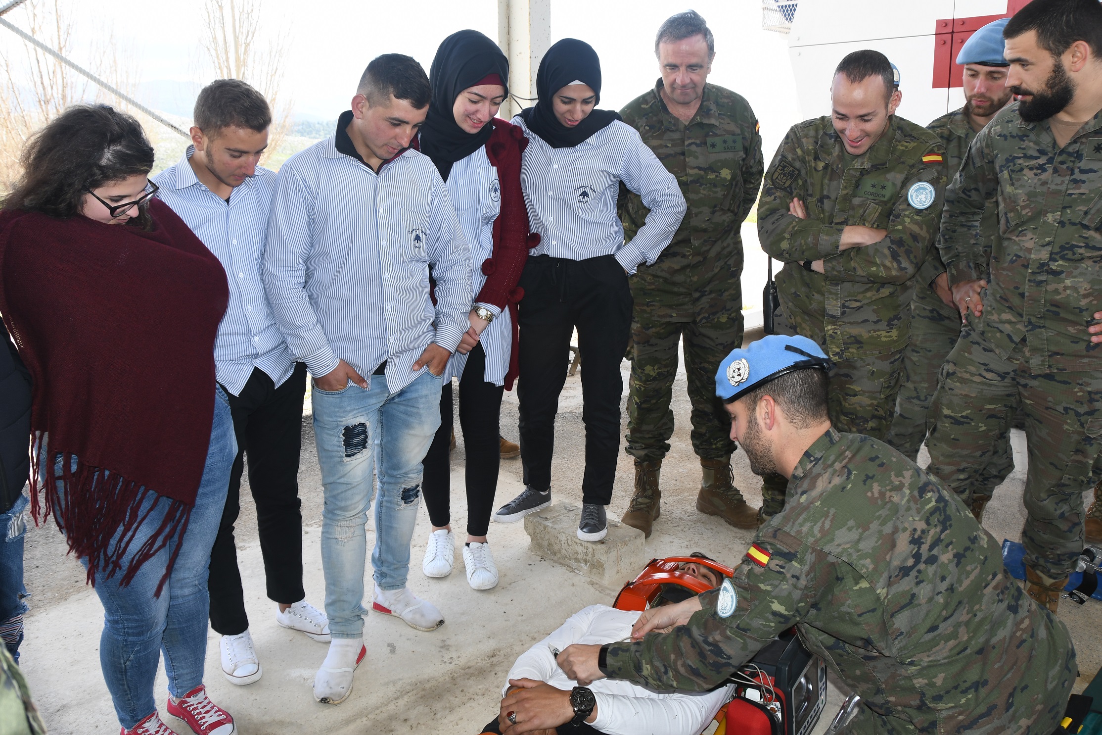 زار حوالي 30 شخصًا، من بينهم أساتذة وطلاب تتراوح اعمارهم بين 14 و 18 عامًا، من مدرسة مرجعيون الفنية ومعهد شهداء الخيام الفني، من صفوف التمريض والفندقية، القاعدة الإسبانية ميغيل دي سرفانتس.